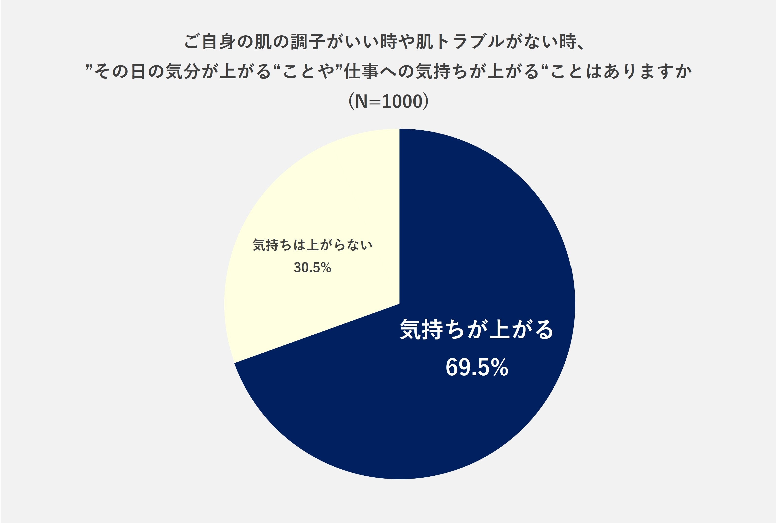約70%の方が『肌トラブルがないと仕事へのモチベーションが上がる』と回答しました。