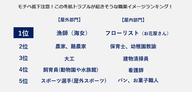 ■モチベ低下注意!この冬肌トラブルが起きそうな職業イメージランキング!
