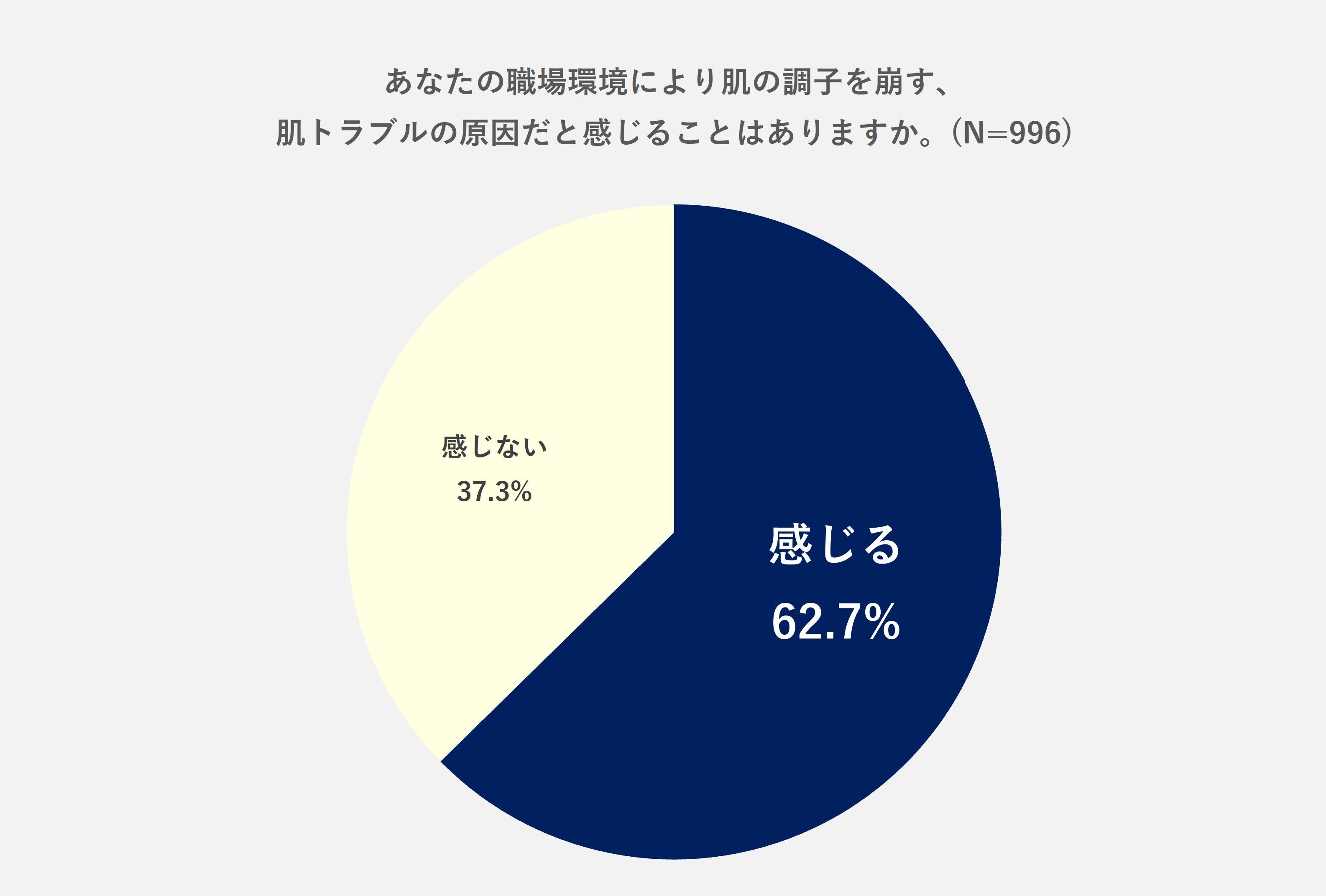 約63%が「職場環境」によって何らかの肌トラブルが起きていると感じている!
