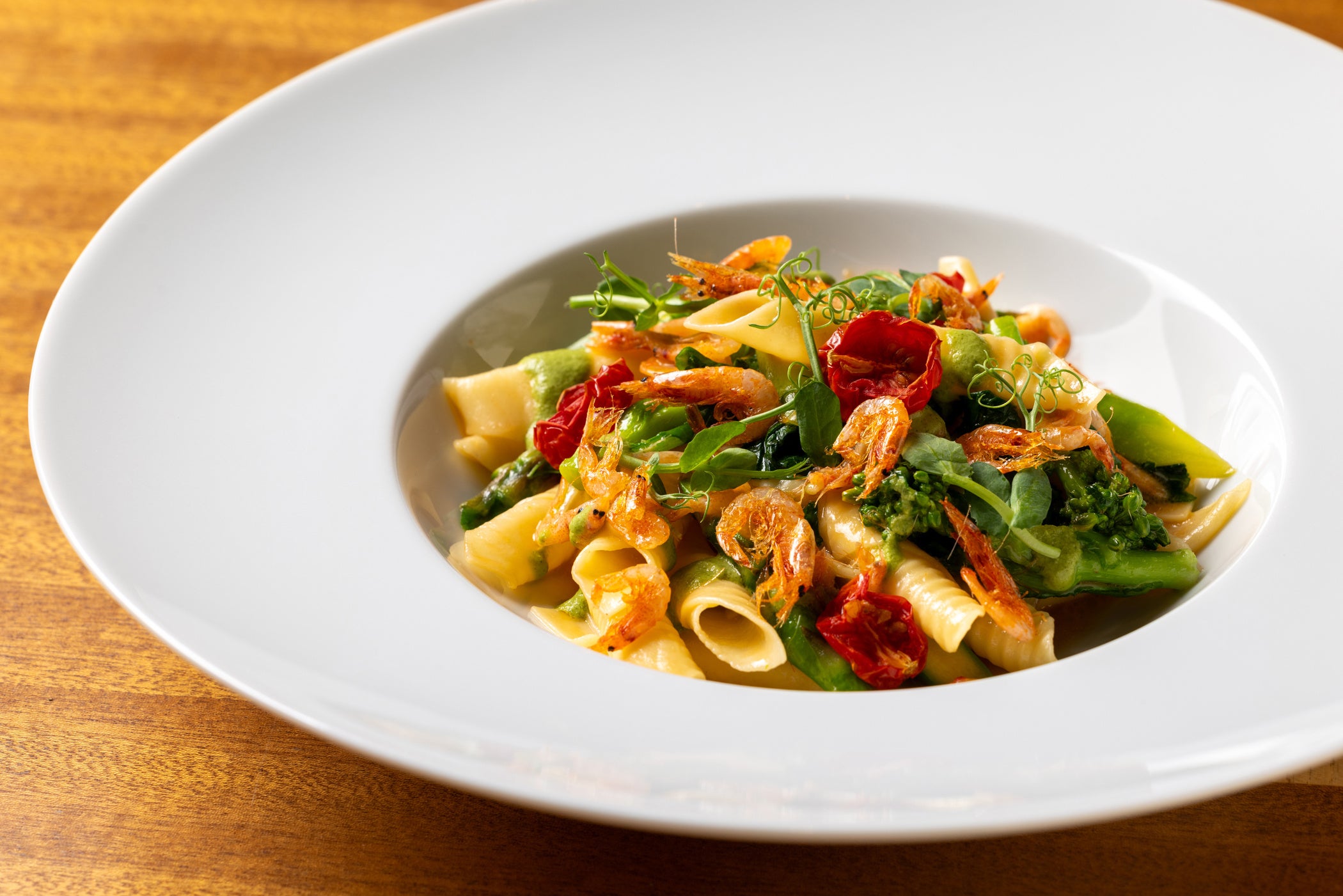 ・桜海老とグリーンアスパラガス 春野菜の自家製ガルガネッリ 3,410円 ★新作