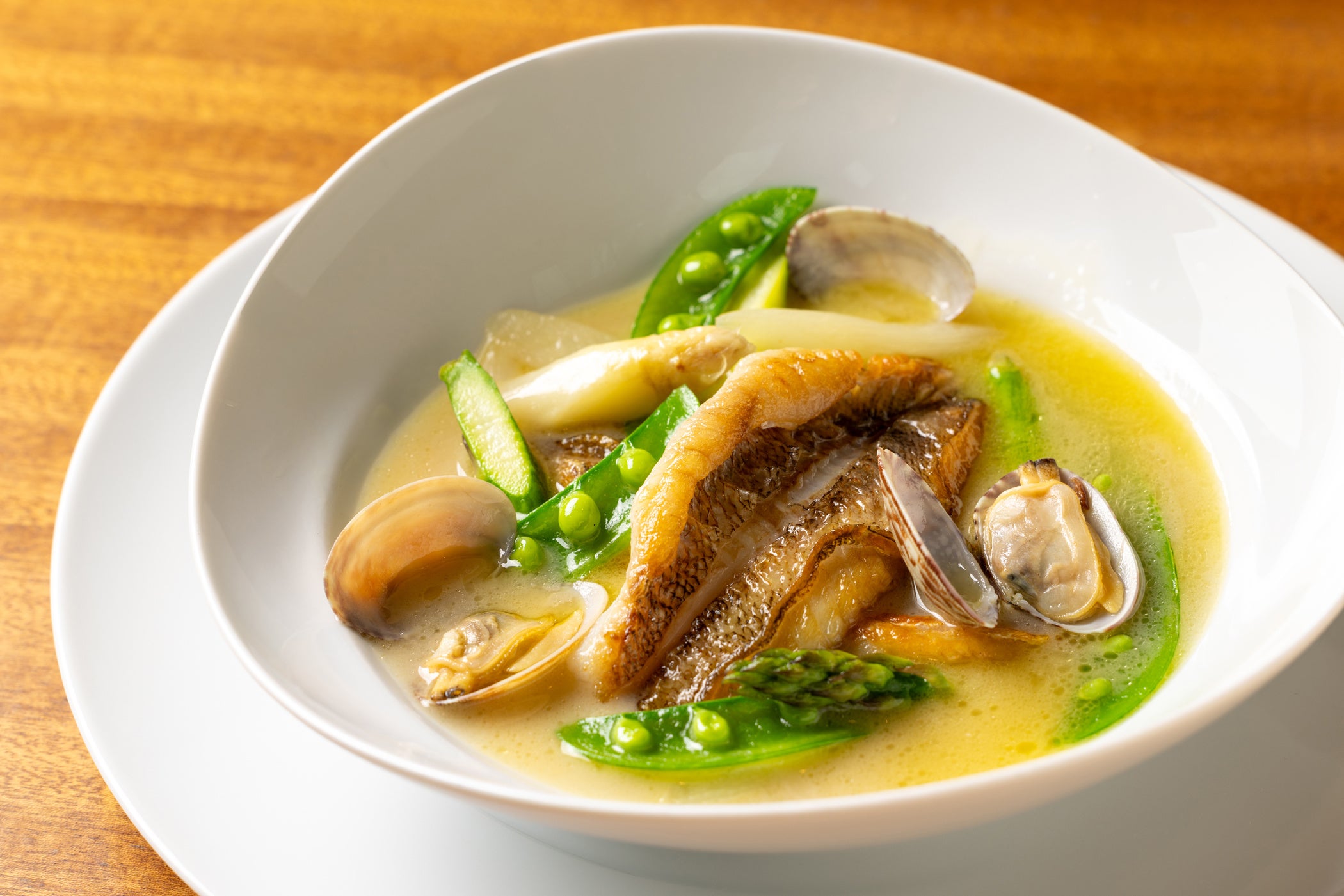 ・メバル アサリ ホワイトアスパラガス 春野菜のアクアパッツァ3,850円 ★新作