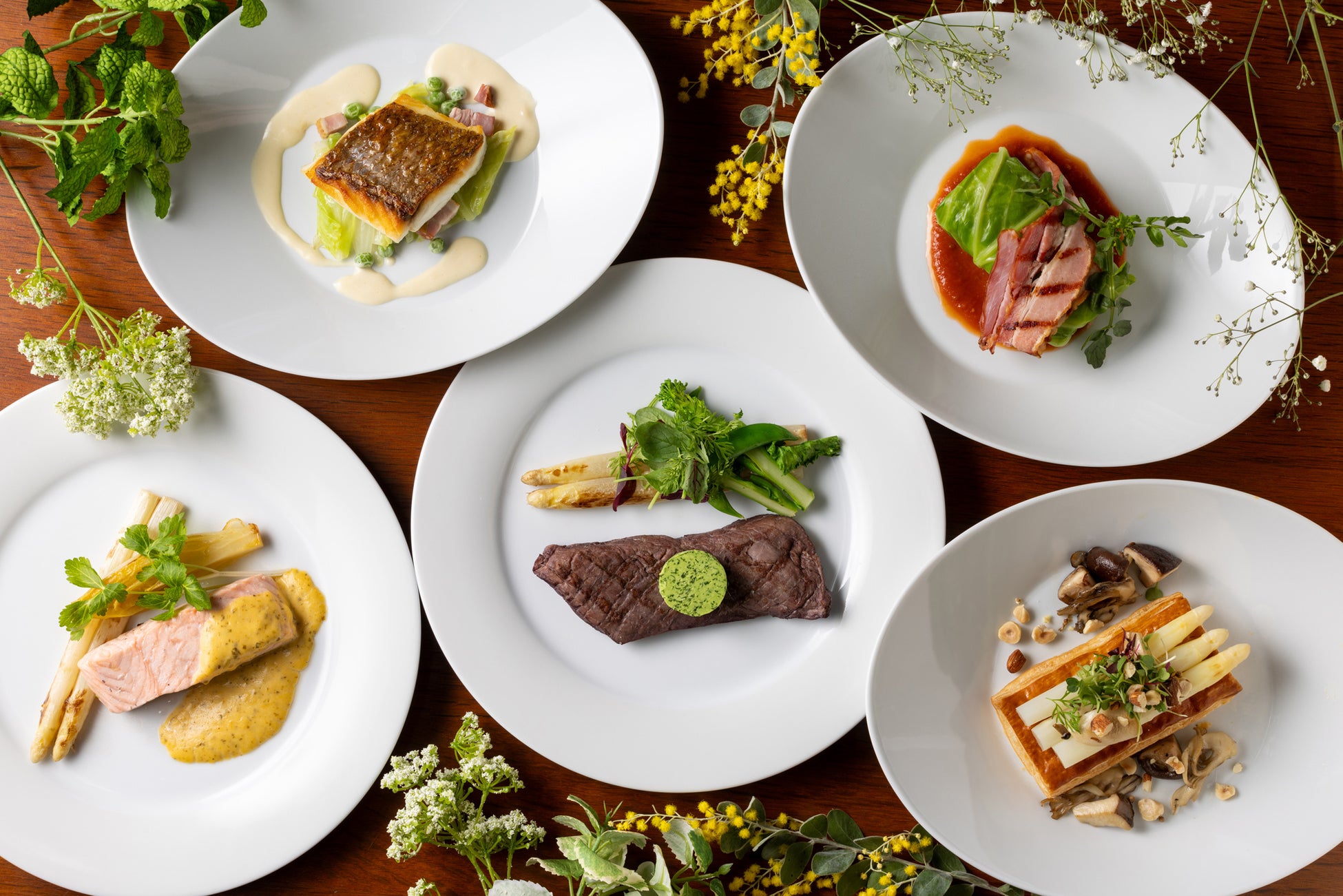 それぞれのシェフが各国の春に想いを馳せ、日本の旬の食材も織り交ぜながらつくり上げたバラエティ豊かなメニューをお楽しみください。
