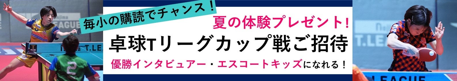 - 抽選プレゼント:卓球Tリーグ「NOJIMA CUP 2022」の観戦チケット