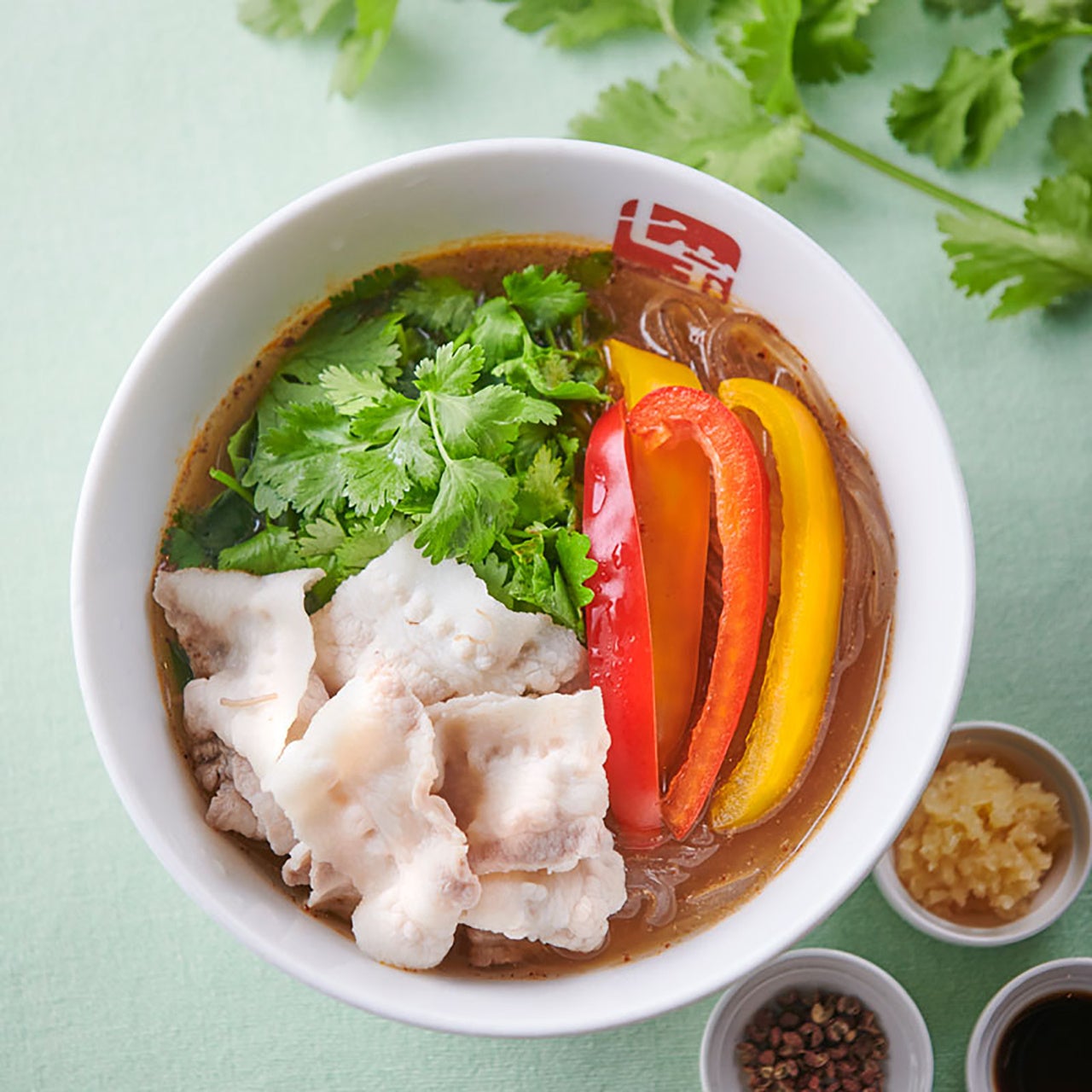 ①ベースはこだわりのスープ+春雨(スープも麺も変更可能)