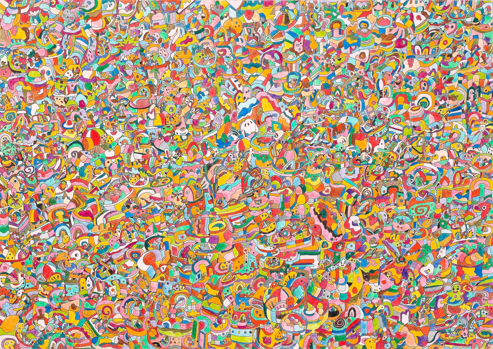 幼い頃から机に向い集中して手指を動かす作業が好きで、モンテッソーリ教室に通っていた。折り紙が得意でホテルでリネンを畳む仕事に就き、余暇として習字やリリアン、編み物をしながら過ごしていた。そんな中、ある日突然ダウン症の方に多い円錐角膜による症状のひとつである急性水腫を発症したが奇跡的に回復し、自ら手持ちの水性ペンで大胆に細やかな線画を描き始めた。彼女は、コツコツとちいさなマルやセルを繋げ、好きなモノや想いを描く。当初はモノクロの作品を描いていたが、次第にたくさんの色を持ち、形を変え、欠片は増殖していく。そして、徐々に現在の作風が確立されていった。