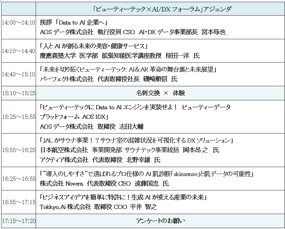 AOSデータ社、「ビューティーテック×AI/DXフォーラム」開催〜AIがあなたの美しさをデザインする~最新美容とウェルネスDX事例〜