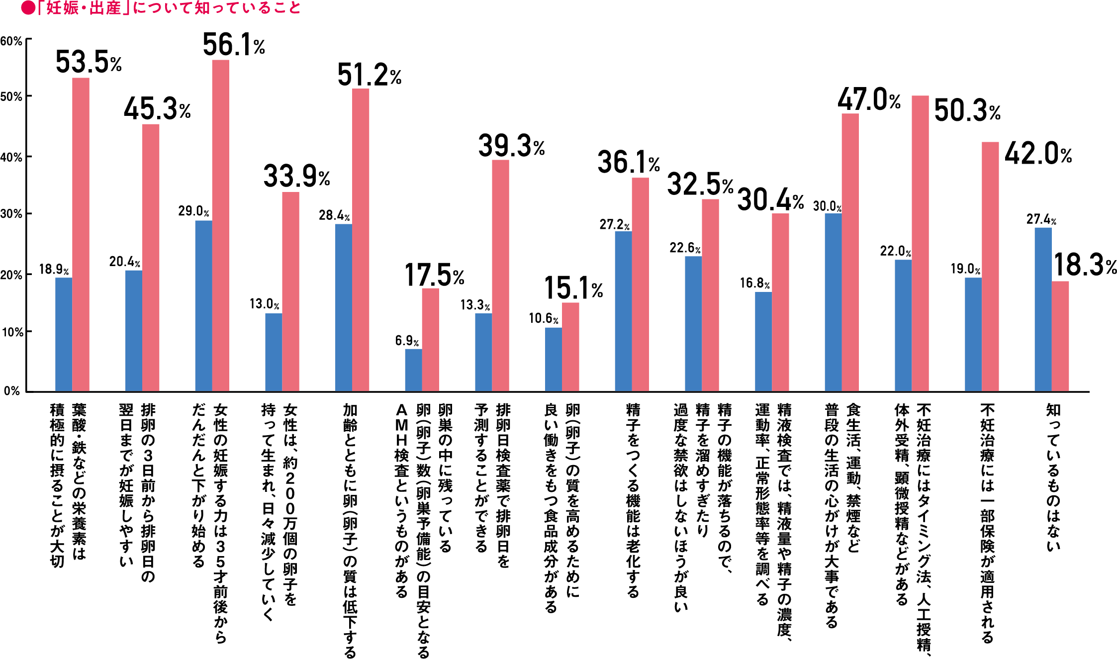 ③妊活に関する知識の有無に男女間で倍近い差が。