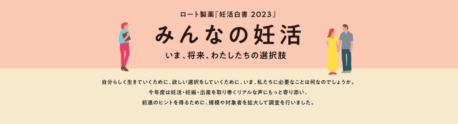 妊活白書では「女性が率先するもの」と思われがちな妊活の社会課題を受け、パートナーと一緒に向き合いながら取り組む「ふたり妊活」の普及など、妊活に取り組む人・取り組もうとする人の声を社会に届けられるよう努めています。