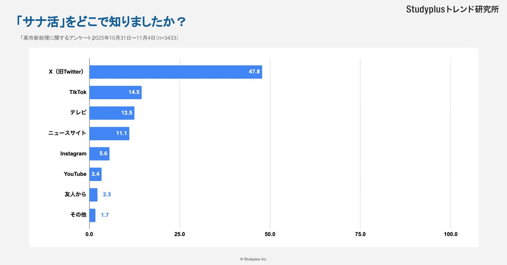「サナ活」を知っていると答えたのは39.0%で、知ったきっかけは「X(旧Twitter)」が最も多く、47.8%となりました。