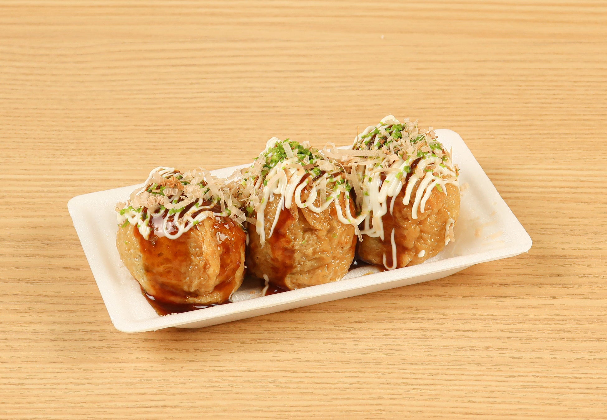 黒酢とバルサミコ酢を合わせた杉玉のしゃりに、天かす、寿司屋ならではのガリを合わせたいなりに、「みっちゃん総本店」のお好みソースと、マヨネーズ、かつおぶし、青さ粉を振りかけました。さらに、茹で水たこも入っており、たこ焼きに見立てた、杉玉ならではの驚きメニューです。