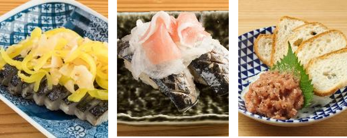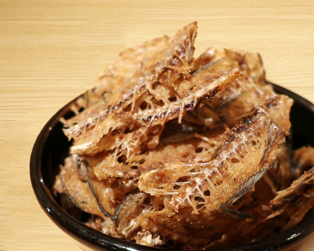 アジの身はにぎりとして提供し、残った骨は揚げてうまい酒の肴に。まるまる一匹余すことなく使い切ります。