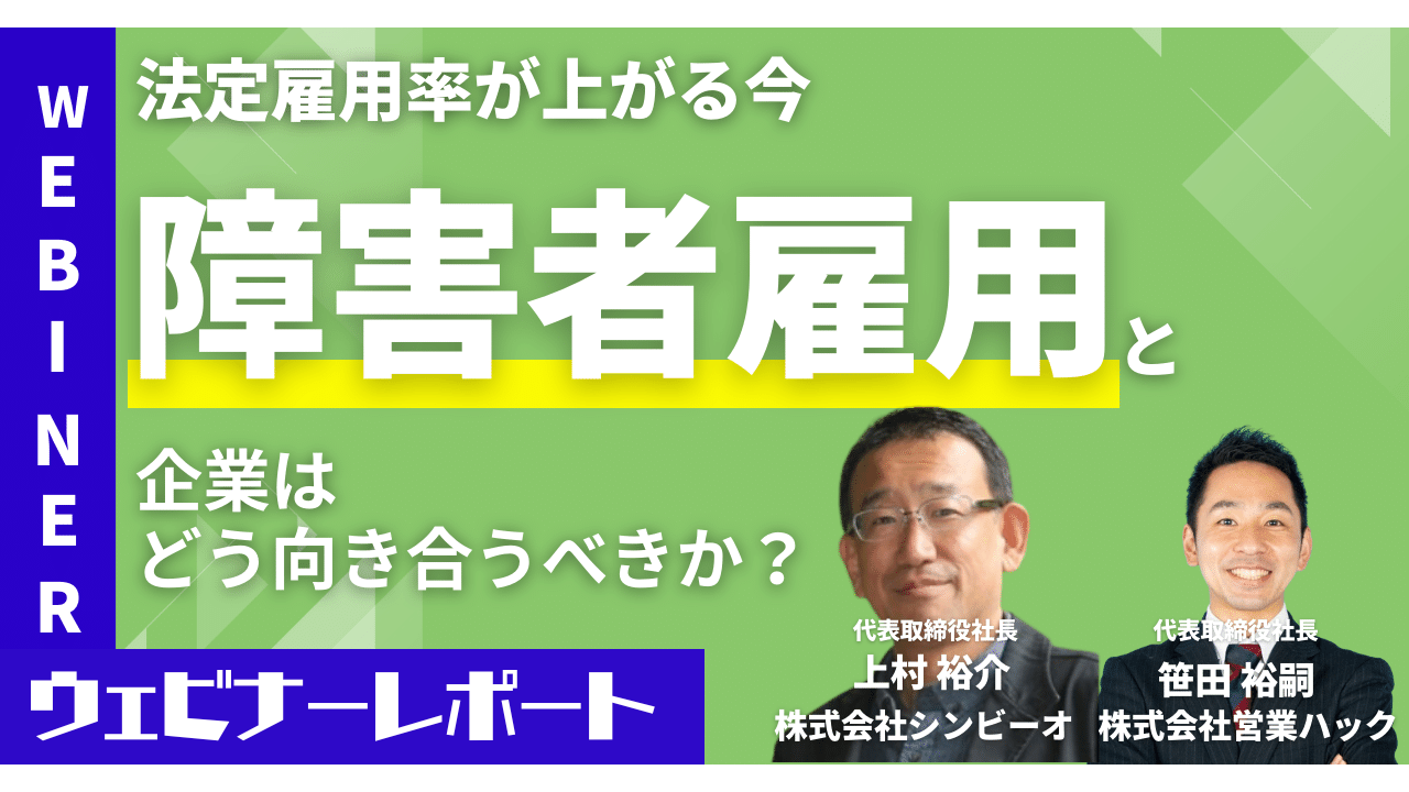 そこで今回、障害者雇用におけるよくある失敗事例3選を、障害者採用・雇用支援をされている株式会社シンビーオの上村社長に現場のリアルな声をお聞きする場を開催することとなりました!