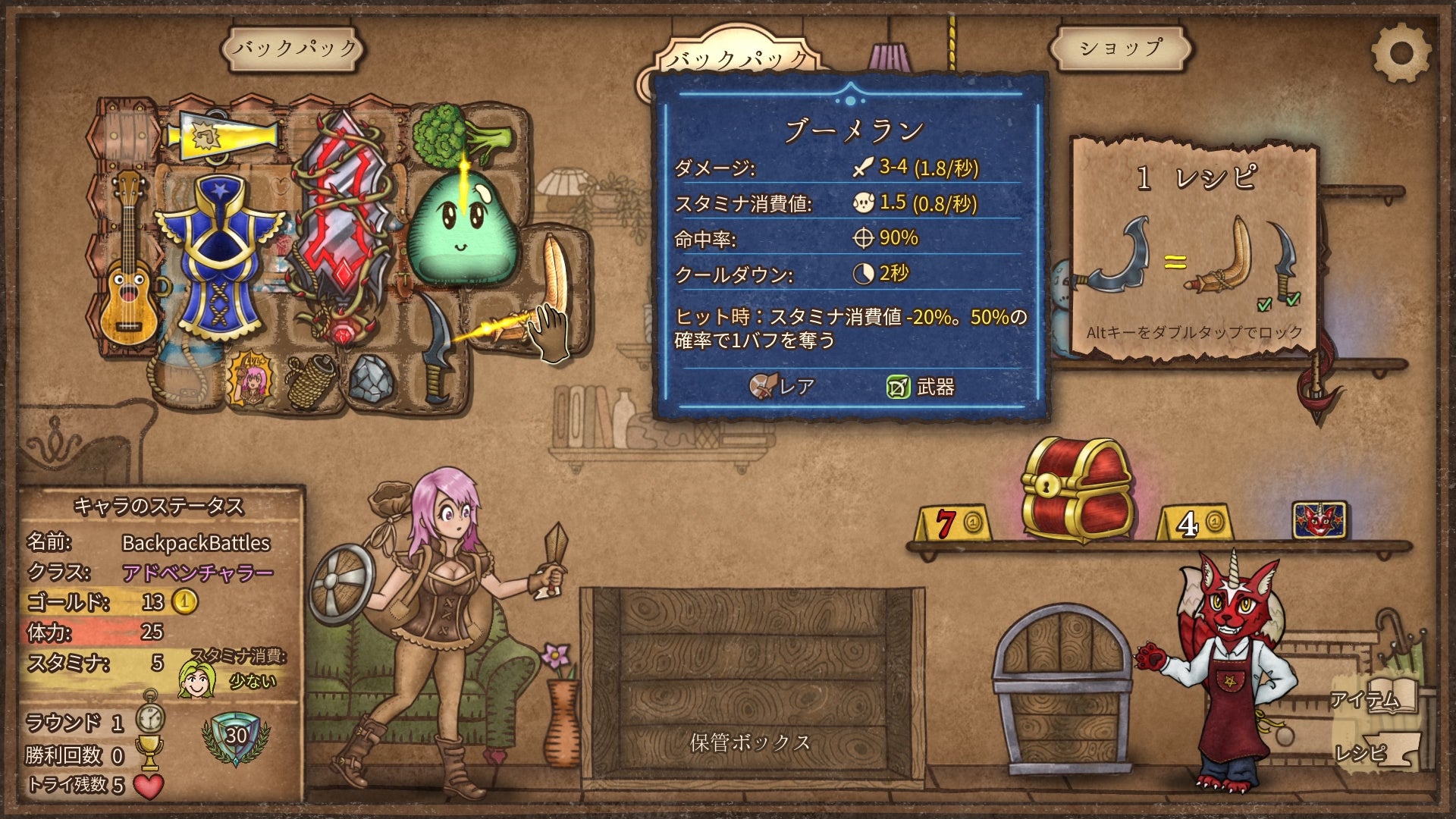 『バックパック・バトル』では、アイテムがぎっしり詰まったバックパックを使って戦います。何を買うのか、そしてそれをどう配置するのかが重要です。賢くアイテムを配置すればするほど、あなたは強くなれます!
