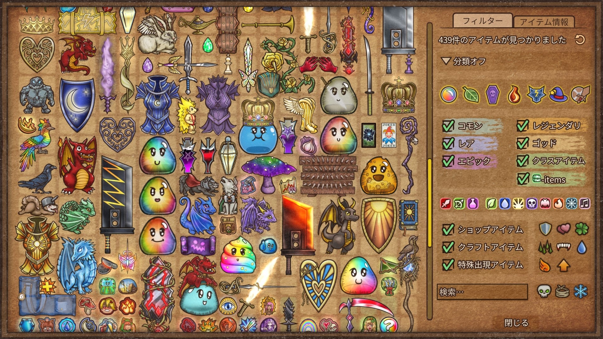アドベンチャラーの初期装備のひとつを使えば、全6種のクラスのアイテムを使えるようになると同時にランダムなアイテムが生成されます。