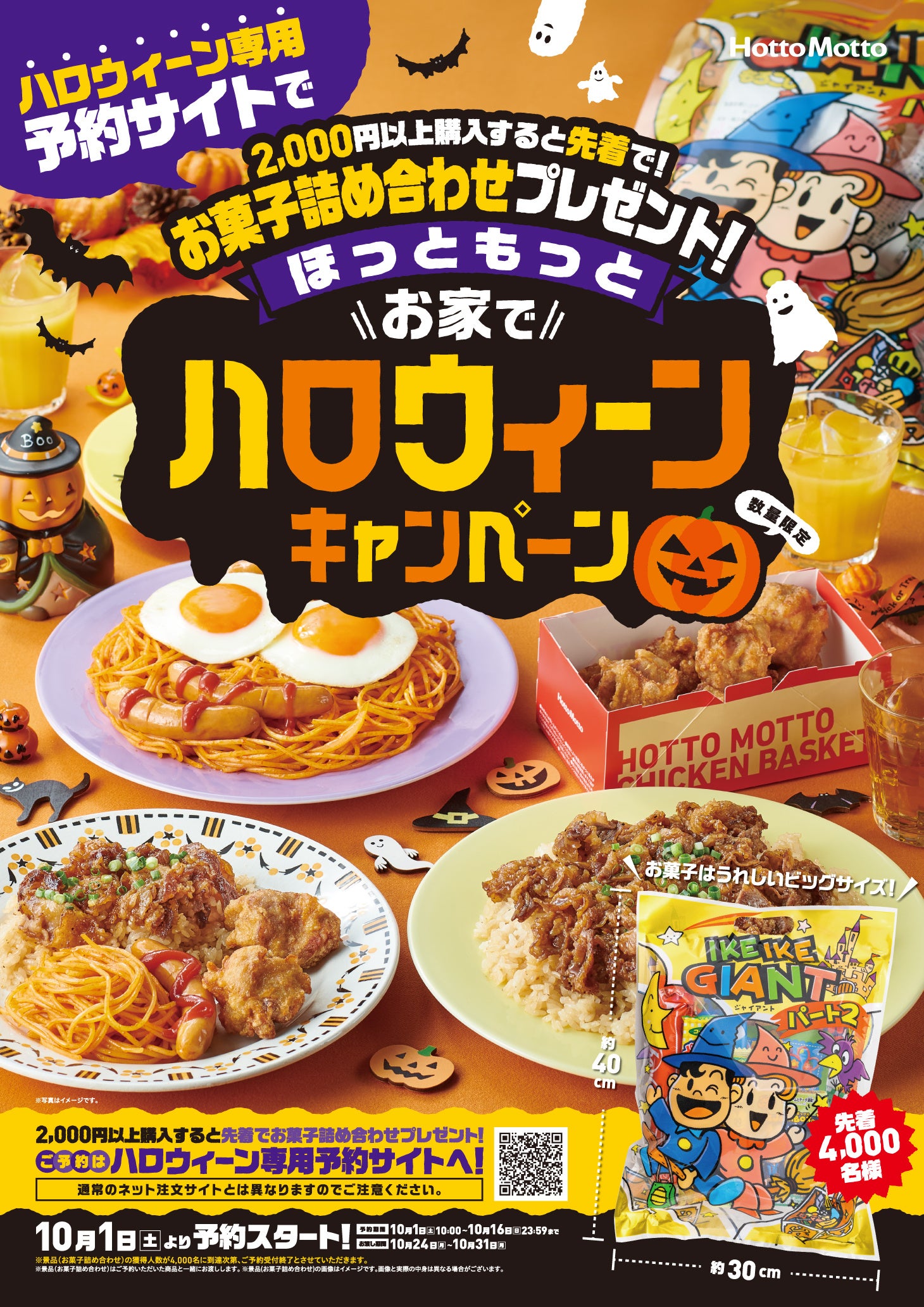 「ほっともっと」専用予約サイト限定!2,000円以上のご予約で 先着4,000名にお菓子詰め合わせプレゼント『お家でハロウィーンキャンペーン』開催 10月1日(土)より予約スタート