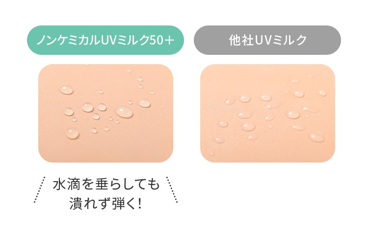 ※バイオスキンプレートに本品と他社UVミルクを塗って精製水を垂らした様子
