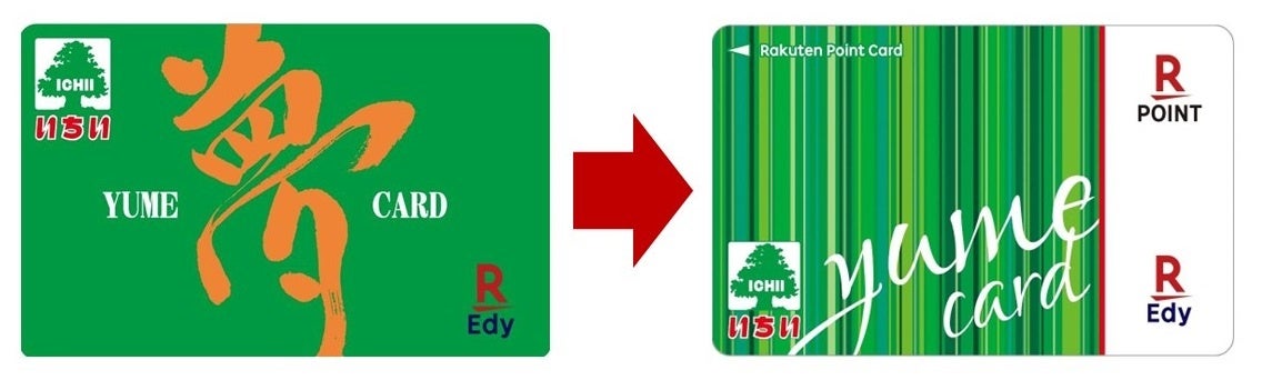 いちい、楽天ペイメント、楽天Edy株式会社(以下「楽天Edy」)は、このたび「楽天ポイントカード」と「楽天Edy」機能を搭載したオリジナルデザインの「yumeカード」を発行します。これまでは、「夢カード」に付帯の「楽天Edy」で支払いをすると、「夢カードポイント」が貯まりましたが、このたび「夢カードポイント」に代わり「楽天ポイント」を貯めることが可能となります。