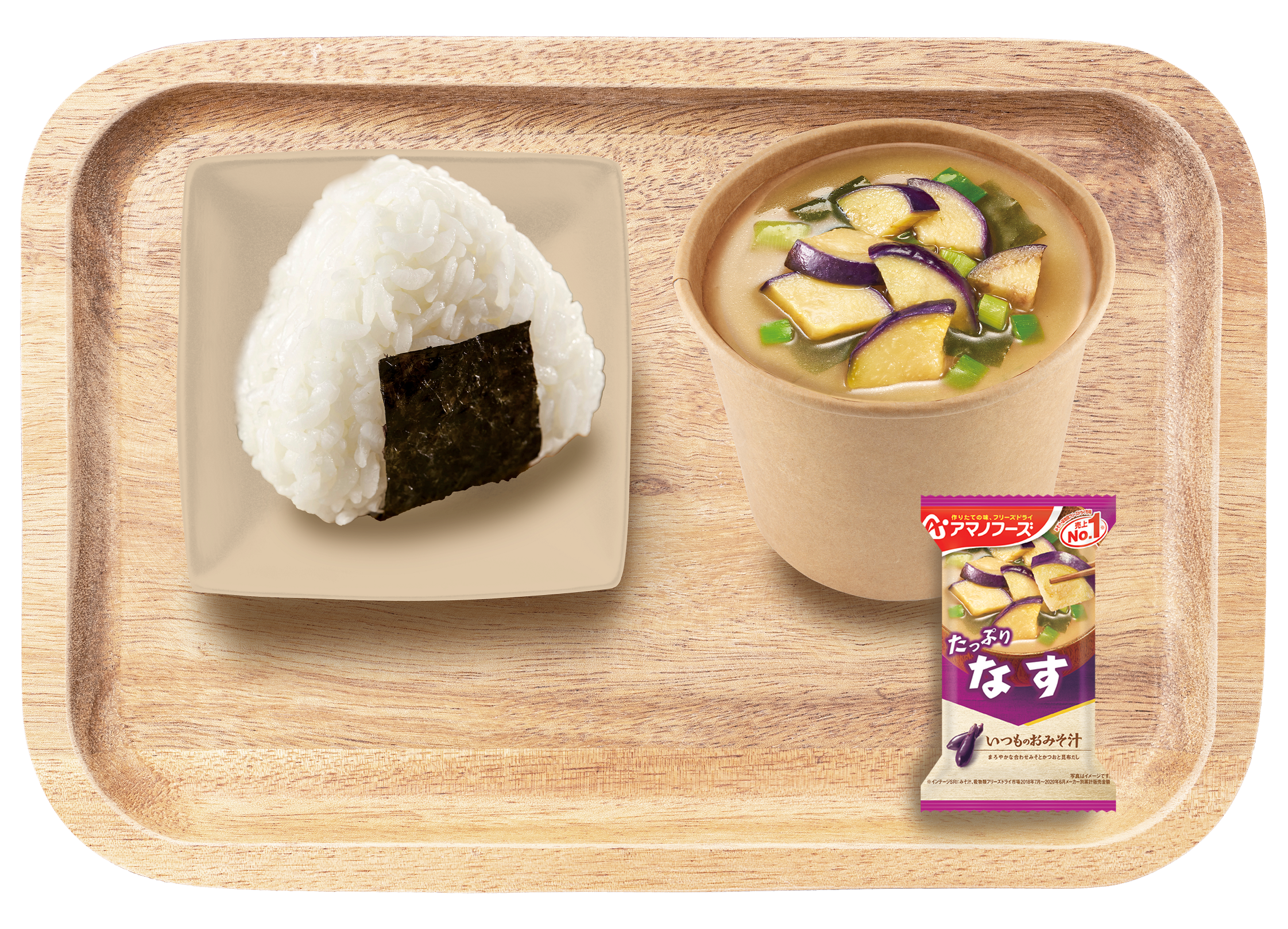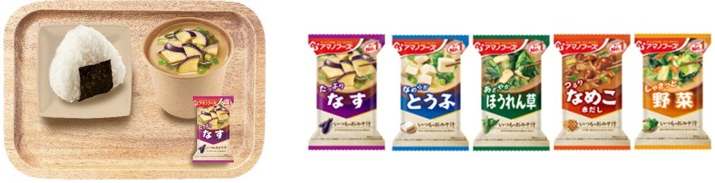 ・フリーズドライのおみそ汁とおにぎりのセット「アマノ食堂セット」を提供