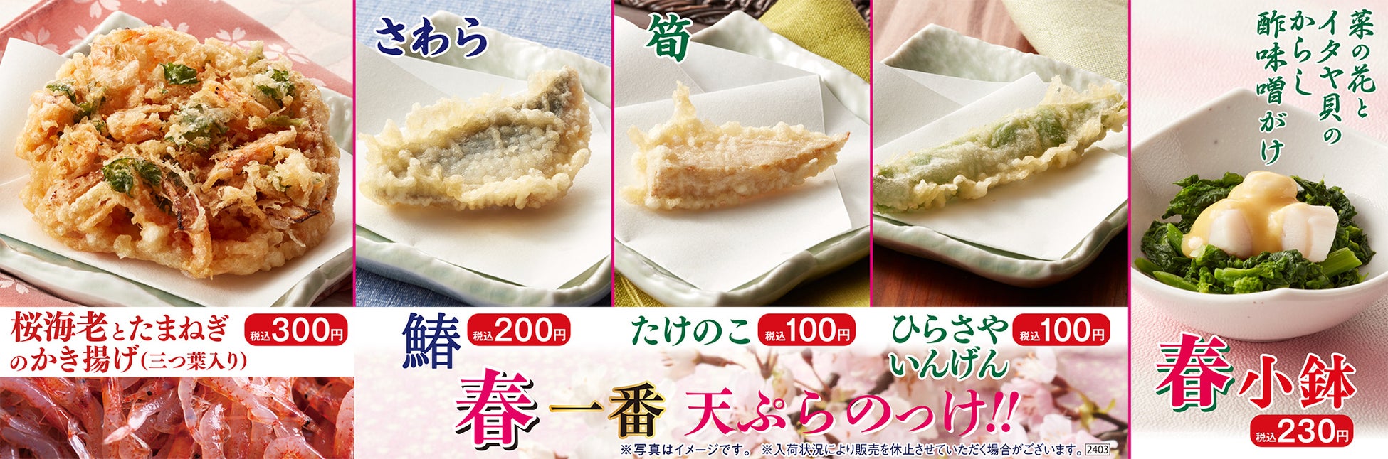 天丼てんやでは、その時期ならではの国産の幸を単品で提供いたします。