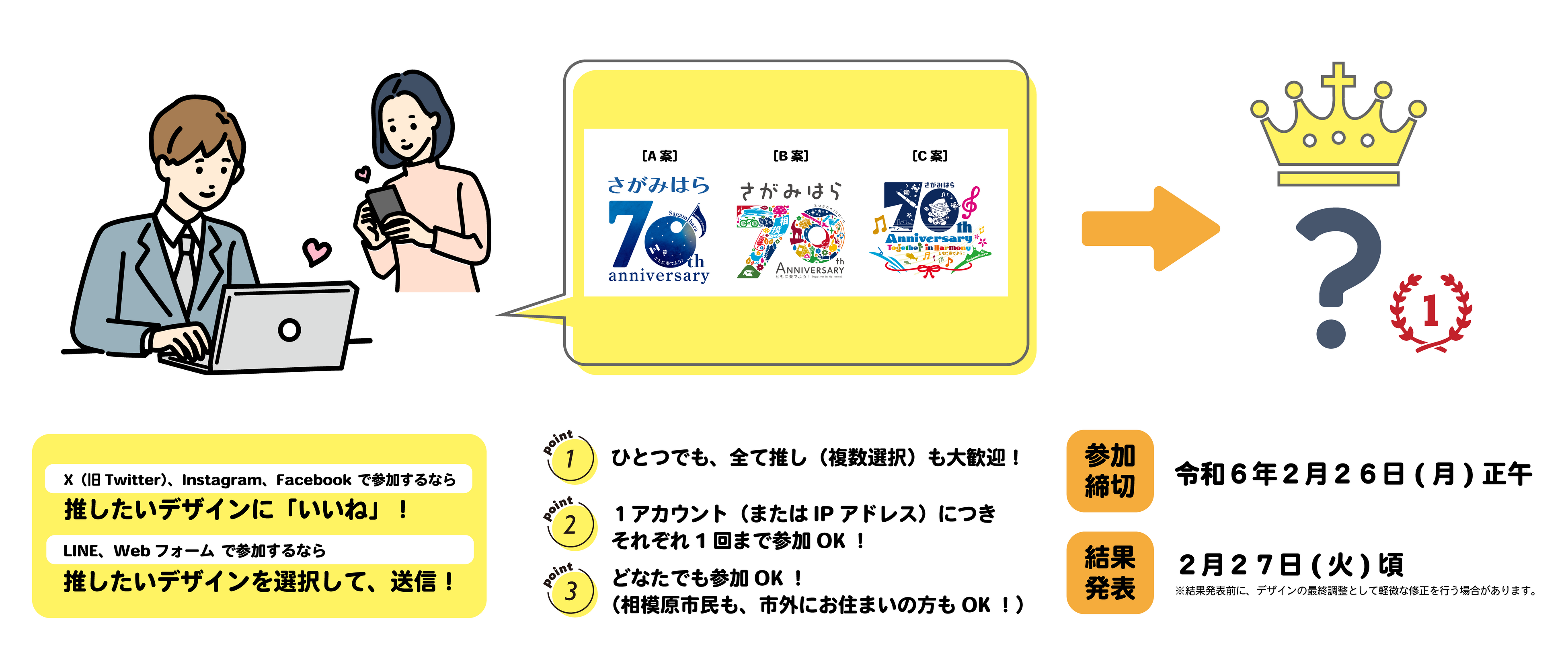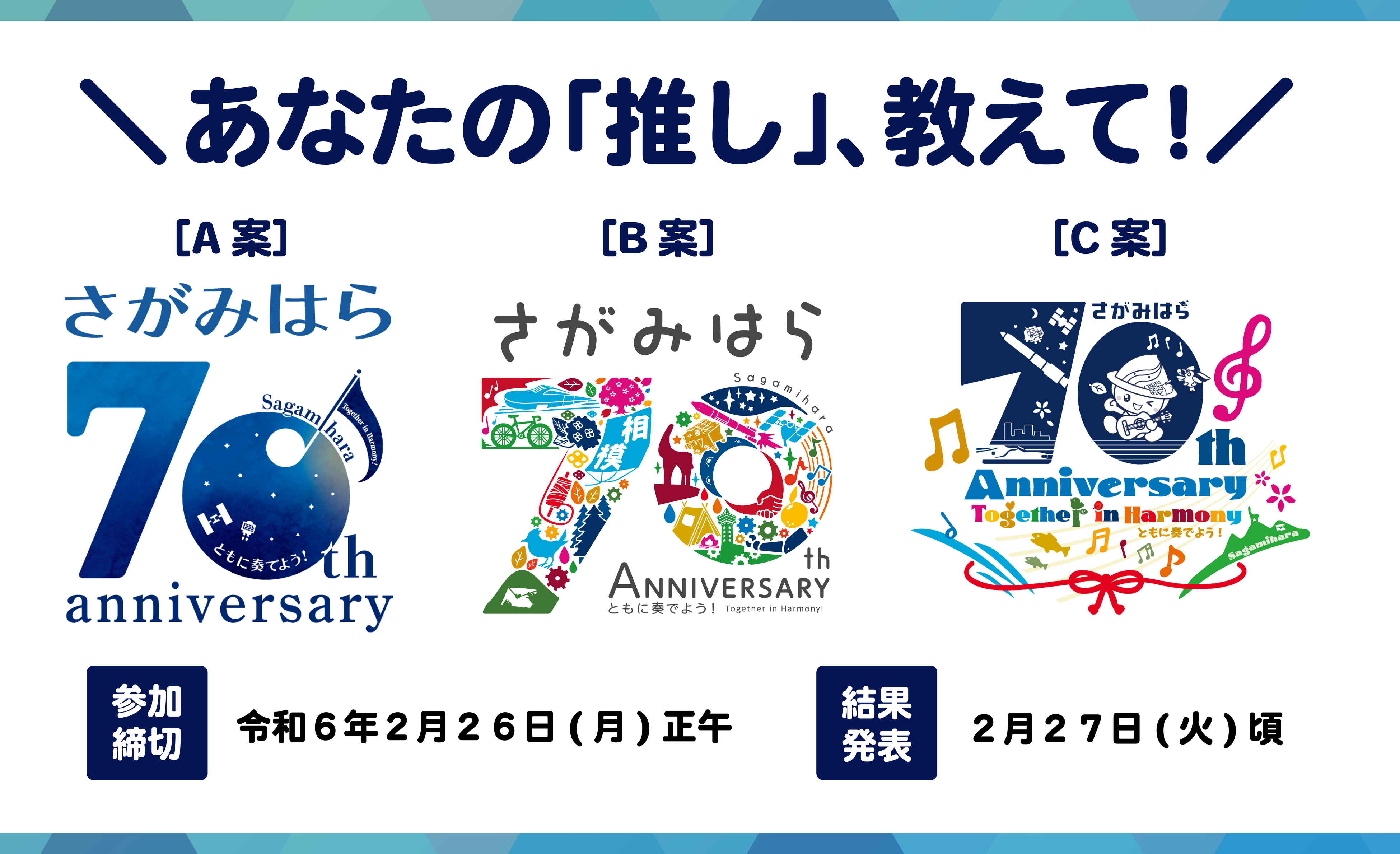 神奈川県相模原市の市制施行70周年を彩るロゴマークを「いいね」などで決定します。冠事業の募集もスタート。
