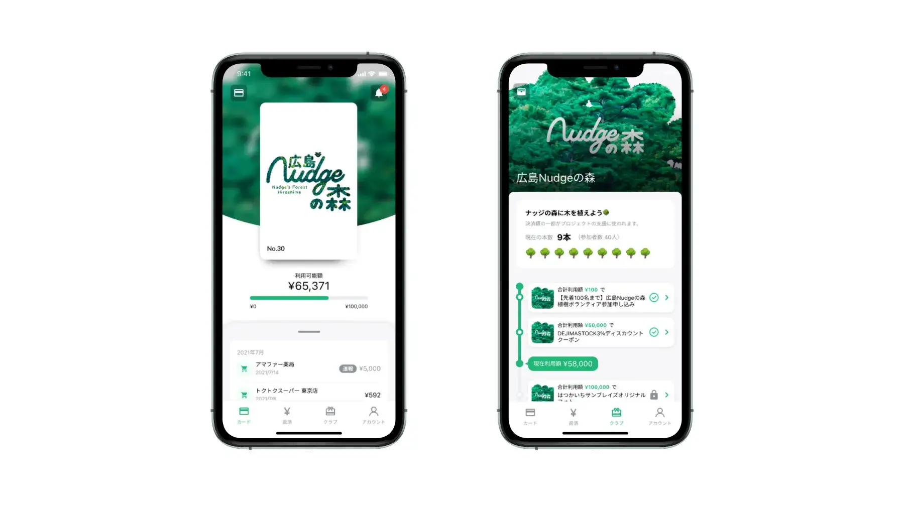 ナッジより、クレジットカードの利用が間接的に森林再生を支援する仕組みを提示。