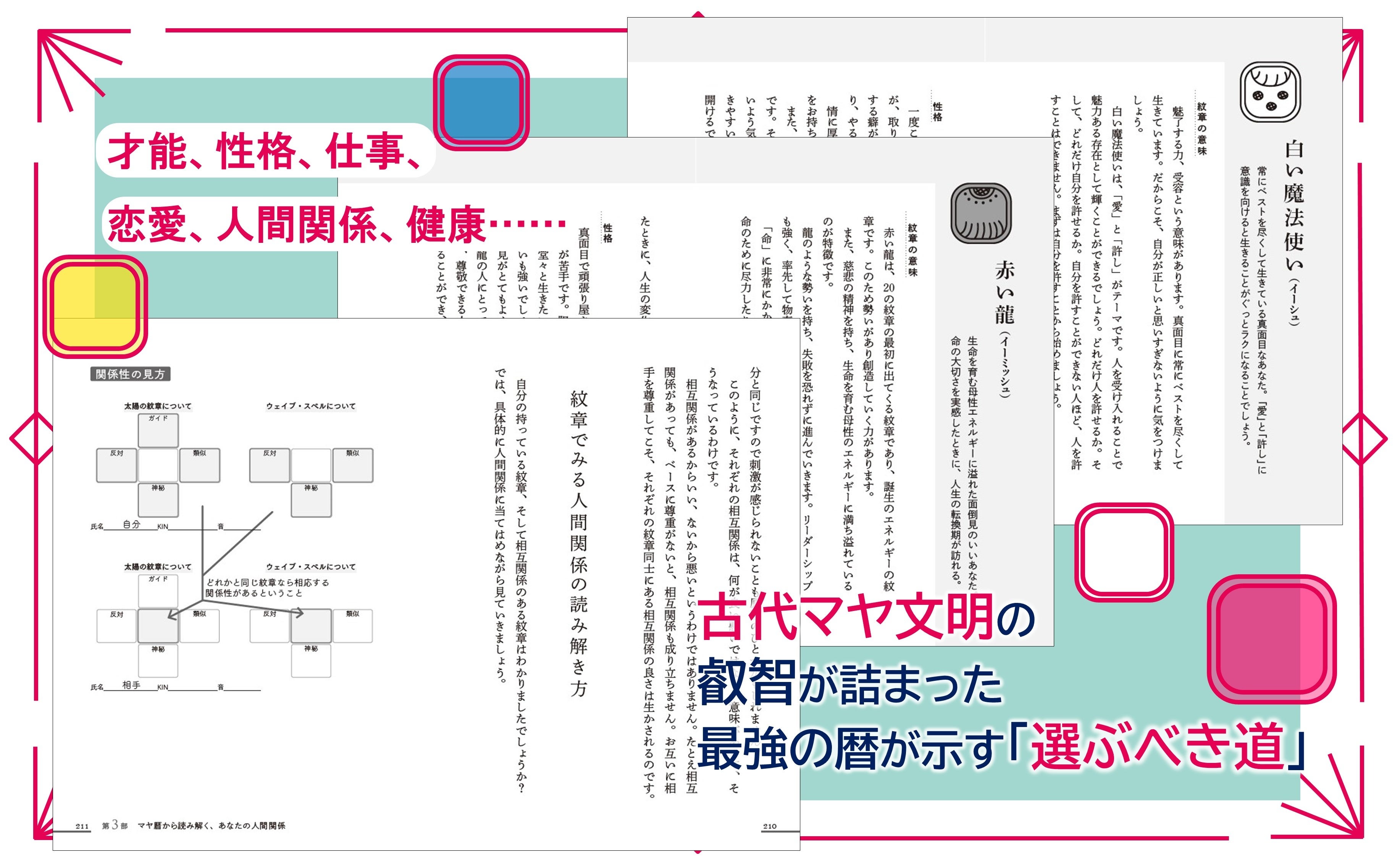 マヤ暦は古代マヤ文明で使われていた暦。星の動きなどを観察しつくられたマヤ暦では、時間は「意識」「エネルギー」と考えられ、生まれてきた日によって宇宙から流れるエネルギーも異なると考えられていました。本書では、このマヤ暦に照らし合わせてあなたが持っている本質や使命を解き明かします。