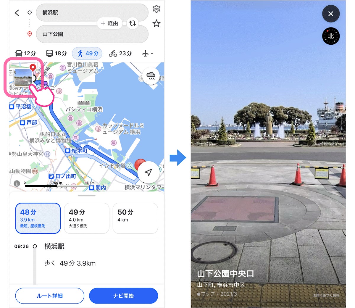 ~ ルート検索結果から「Look Around」機能への遷移にも対応。目的地周辺の実際の風景を確認でき、よりスムーズな移動が可能に ~
