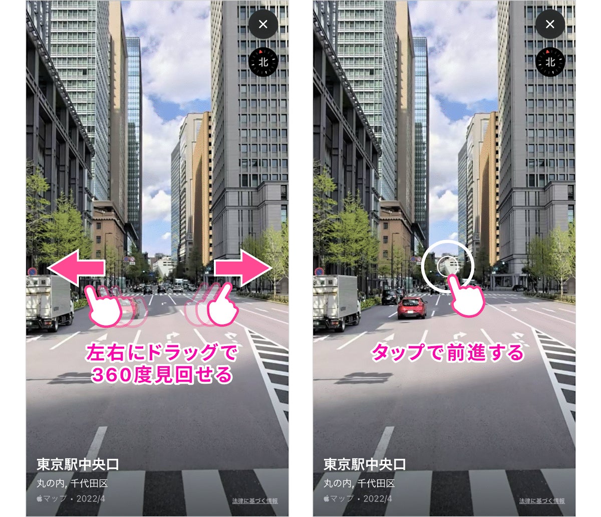 ・右上の×ボタンをタップすると「Look Around」機能画面が閉じ、元の画面に戻ります。