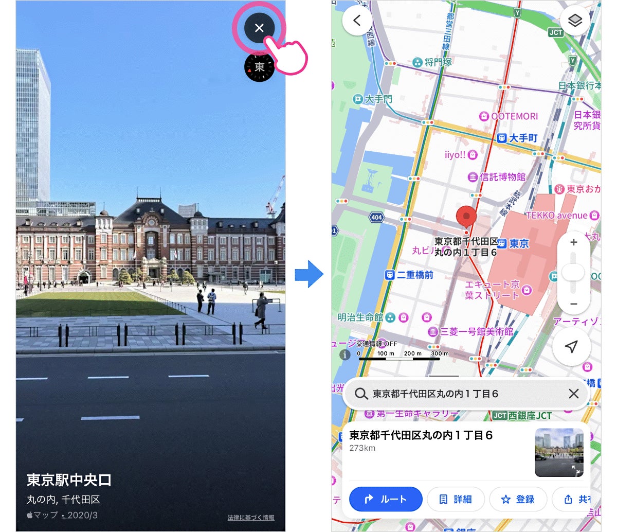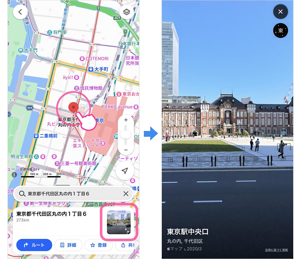 〈ルート検索からゴール地点を確認する場合〉