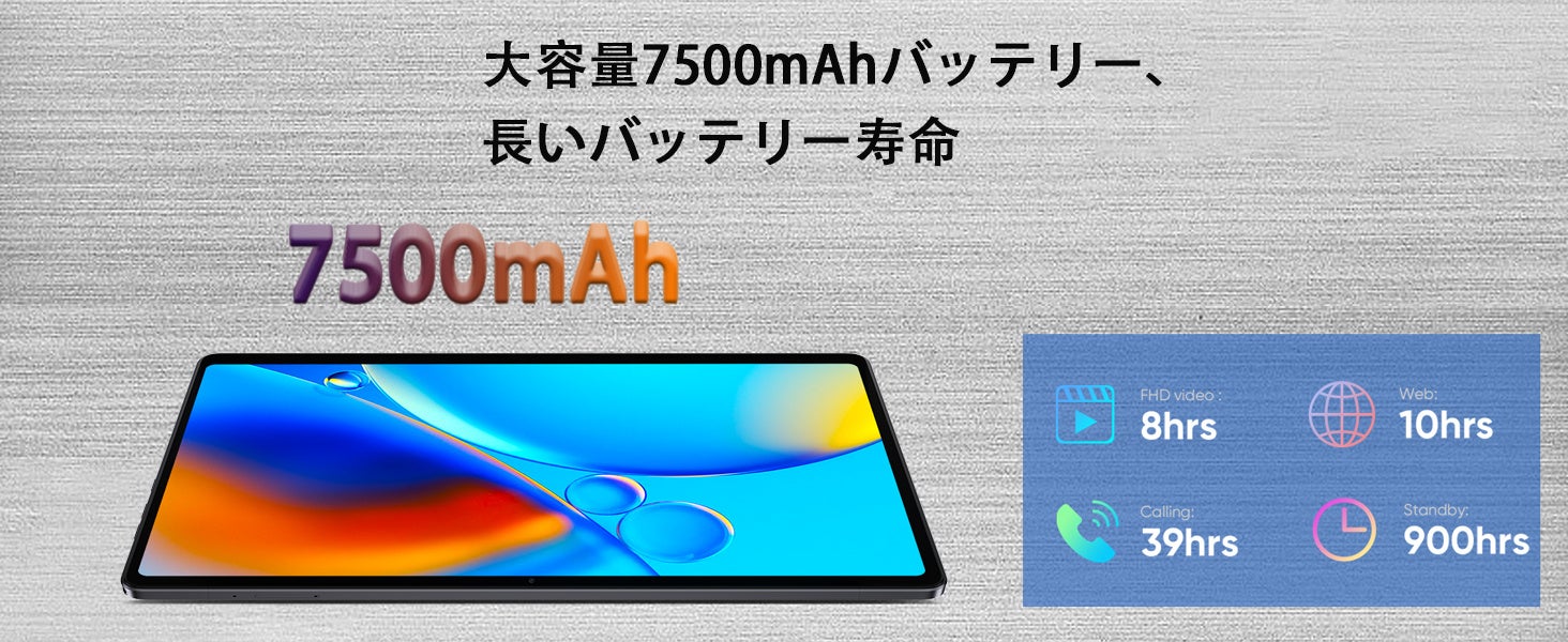 7500mAhの大容量バッテリーを搭載。 日常のどんな作業でも、豊かなパワーを発揮します。 長時間のビデオ通話から一日中ゲームを楽しむまで、一日中継続的な電力を維持し、アクティビティを中断することはありません。 このデバイスは Type-C インターフェイスも備えており、充電がより便利かつ高速になります。
