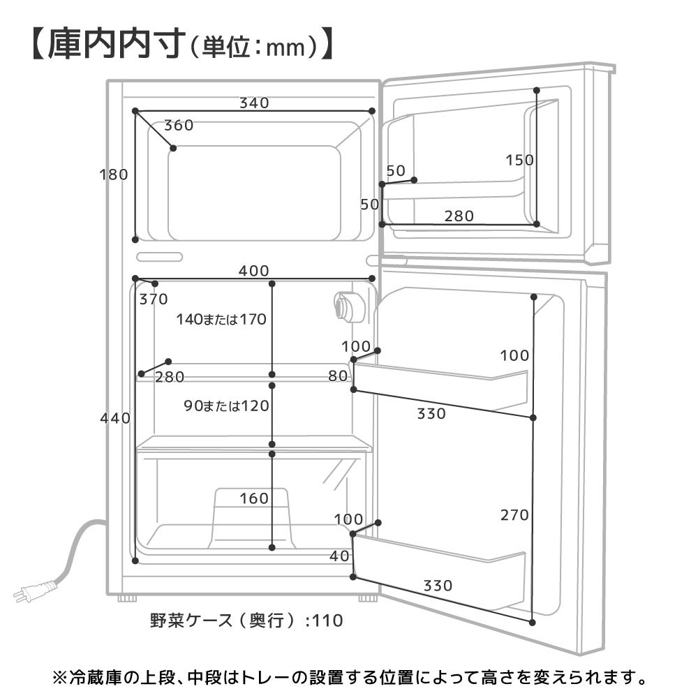 本製品は、コンパクトながら大容量83Lの、2ドアタイプの冷蔵庫です。