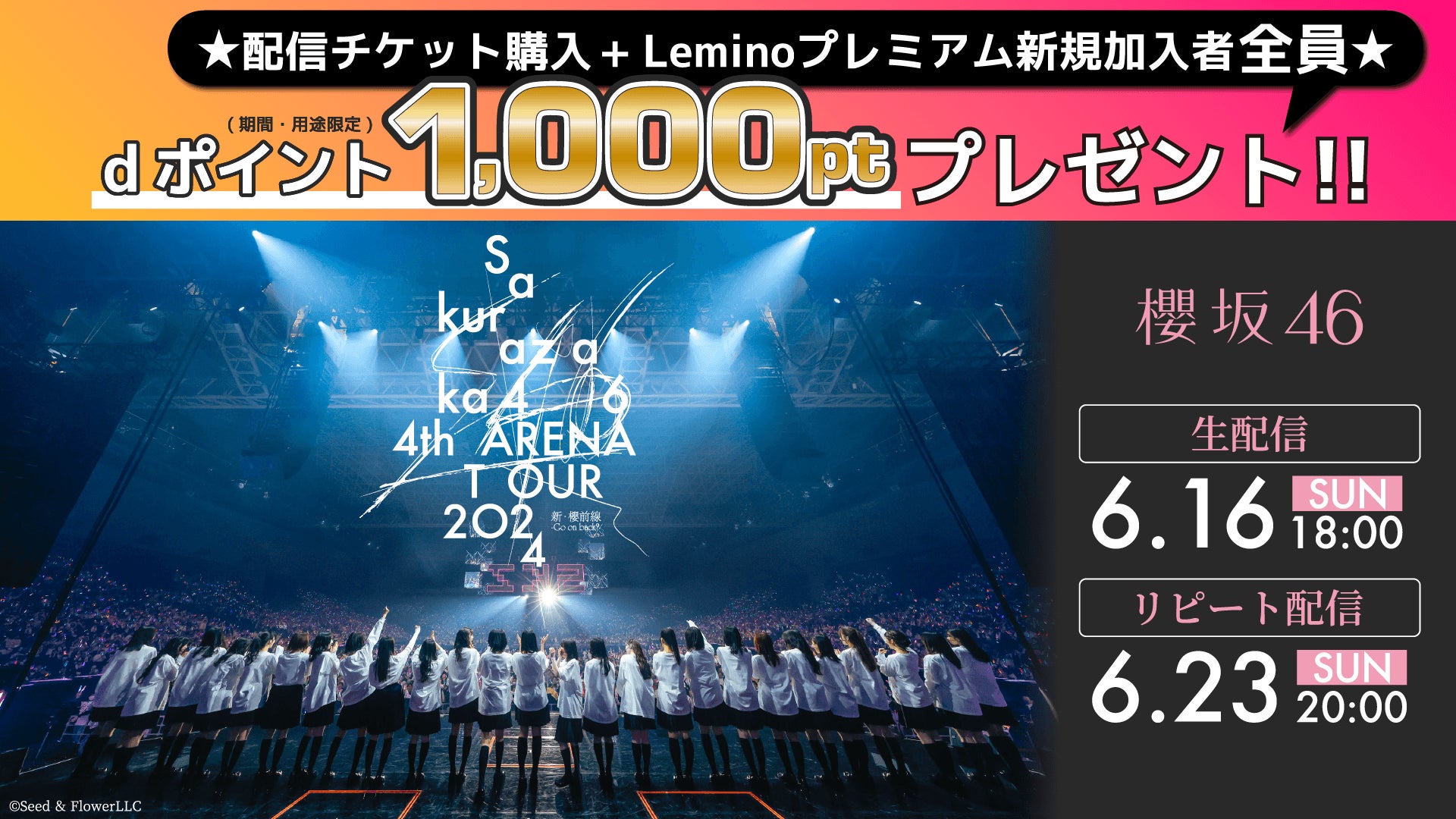 また、「Lemino」では「櫻坂46 4th ARENA TOUR 2024 新・櫻前線 -Go on back?-IN 東京ドーム」の開催を記念し、条件を満たした方に1公演につきdポイント1,000pt(期間・用途限定)を進呈するキャンペーンを実施いたします。進呈されたdポイントで、ライブ配信や「Lemino」の月額利用料にも活用できるお得な機会です!詳細はチケット購入ページにてご確認ください。