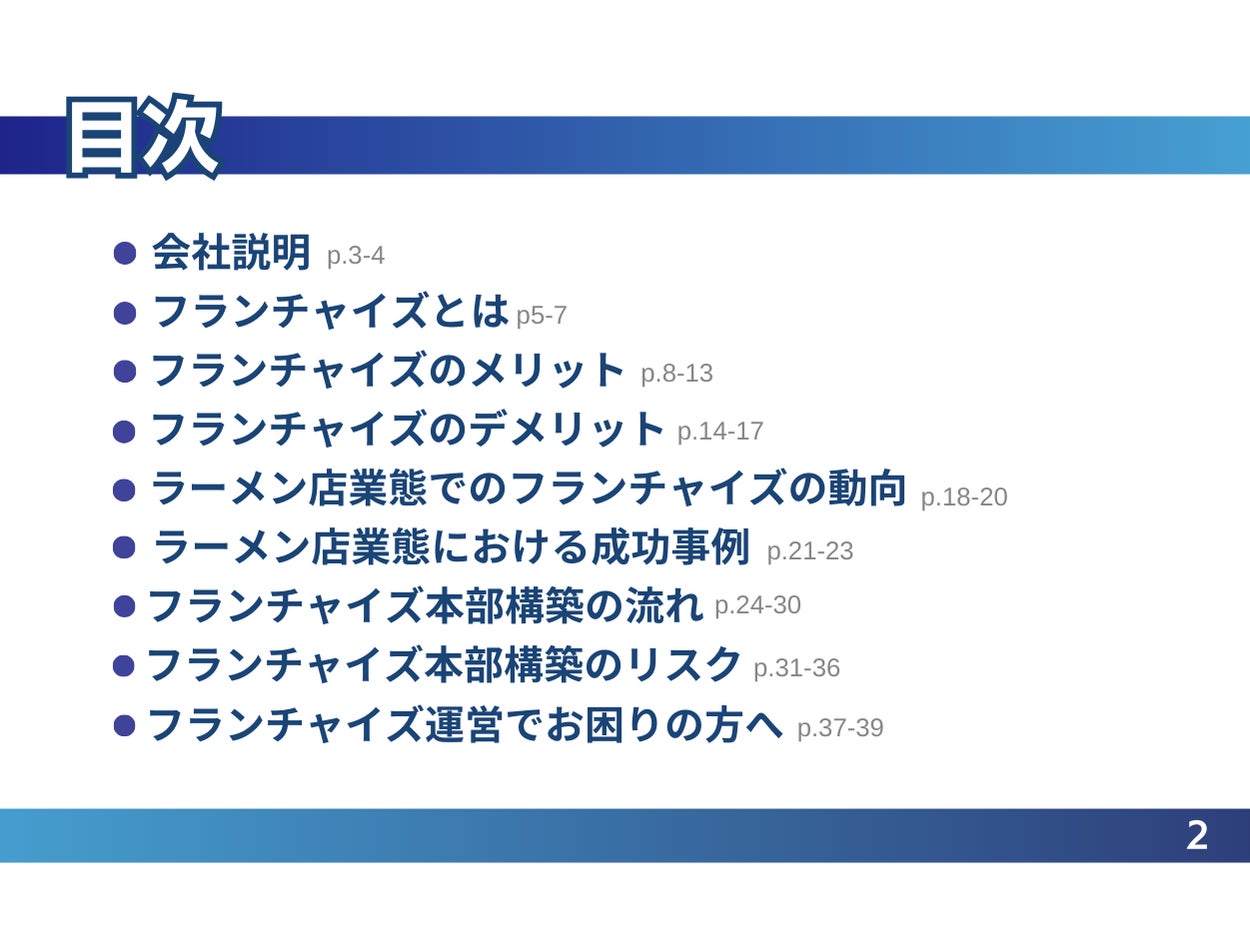 本レポートでは、ラーメン店経営者向けにフランチャイズの基本的な仕組み、メリットとデメリット、本部を構築する際の流れやリスクについて解説し、フランチャイズビジネスを始めるために必要な情報や注意点を紹介いたします。