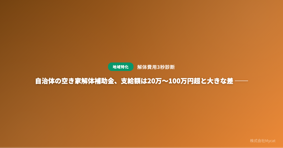 株式会社Mycat(本社:東京都目黒区)は、解体費用の概算サービス「解体費用3秒診断」(https://kaitai.xyz)に、自治体別の空き家解体補助金制度を比較分析する機能を実装した。