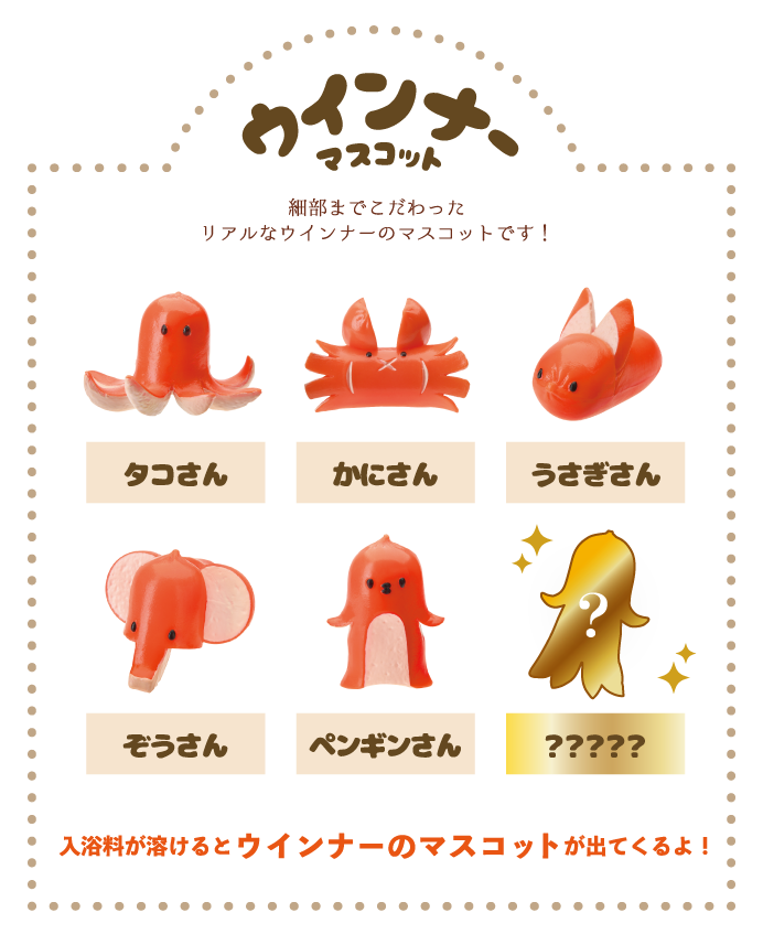 本物そっくりな赤ウインナーのマスコットがひとつ出てくる入浴料です。