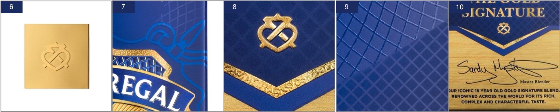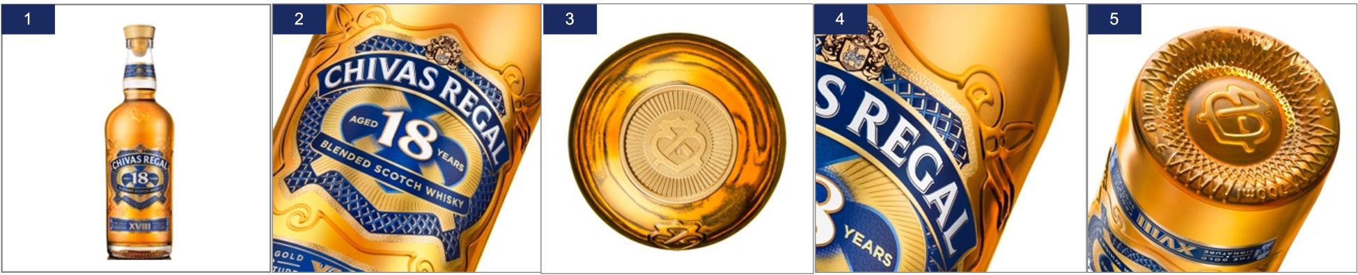 ② 正面ラベルは、ダークブルーとゴールドの荘厳なコントラストと優雅な立体感で、「シーバスリーガル」が誇るクラフトマンシップとラグジュアリーを表現しています。