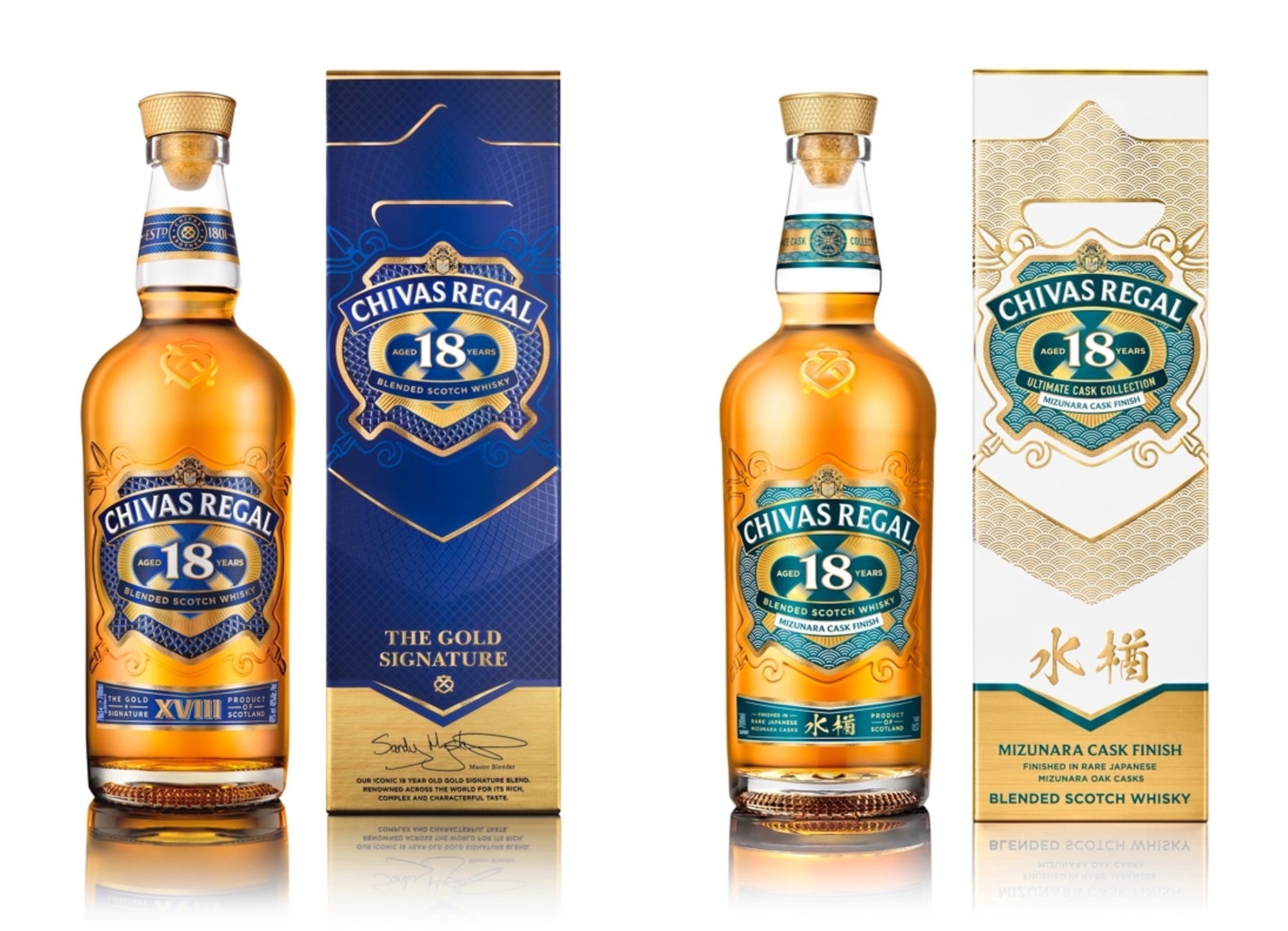 ブレンデッドスコッチウイスキー「シーバスリーガル 18年」と「シーバスリーガル18年 ミズナラ カスク フィニッシュ」がパッケージデザインを一新