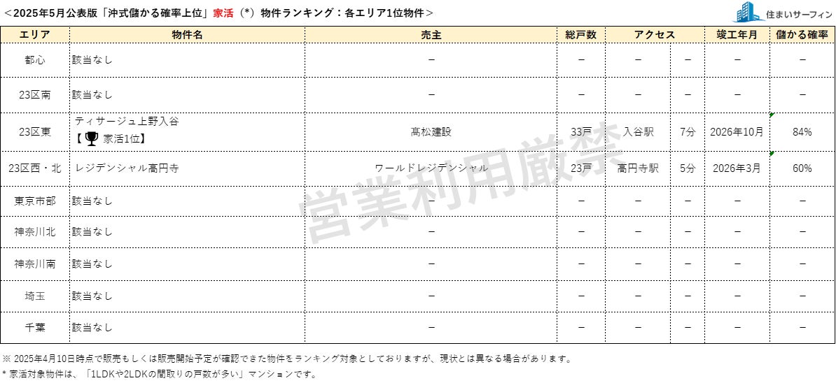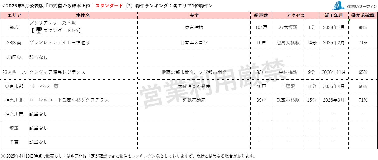 5月公表分は、2025年4月10日時点で販売もしくは販売予定が確認できた物件を対象としています。