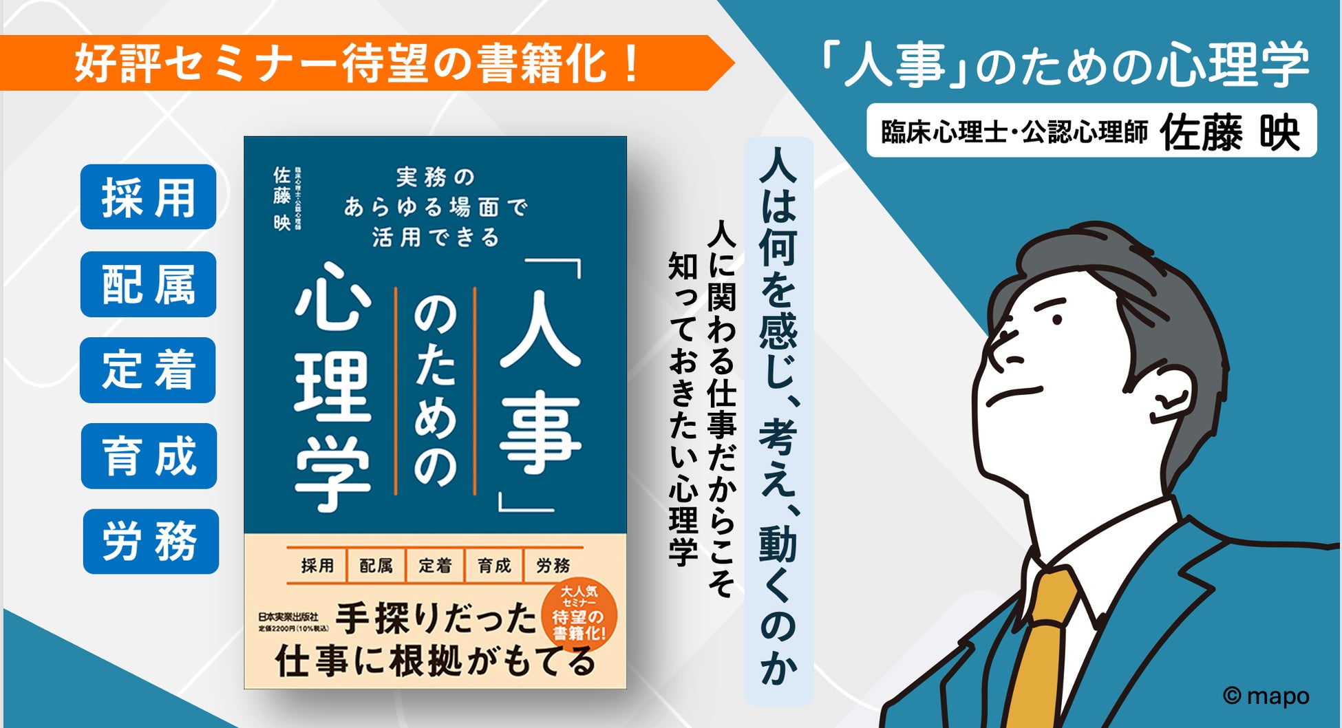 Personality Techを通じたHR事業「ミキワメAI」を提供する株式会社リーディングマーク(本社:東京都港区、代表取締役社長:飯田 悠司、以下「リーディングマーク」)は、当社専門役員であり組織心理研究所 所長を務める佐藤 映(さとう うつる)の初の著書「実務のあらゆる場面で活用できる『人事』のための心理学」(発行:株式会社日本実業出版社)の電子書籍版を、2026年2月20日(金)より順次販売開始することをお知らせします。