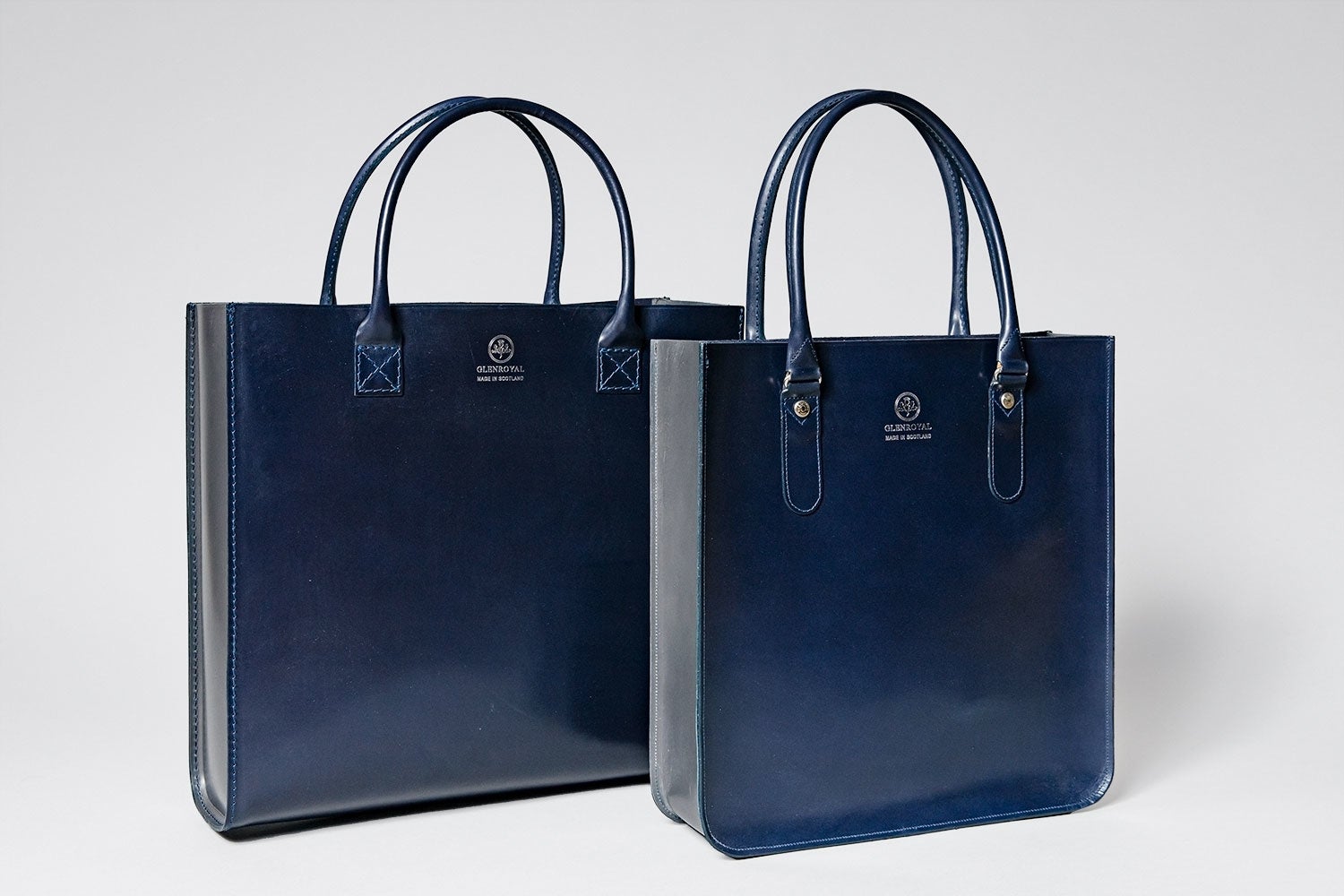 大好評につき入荷待ちが続いているグレンロイヤルの「2ハンドルトートバッグ」と「ビッグトートバッグ」ですが、京都店オープンを記念して、通常商品にはない特別な配色の限定アイテムをご用意しました。京都店限定トートバッグは、いずれもダークブルーとグレーのバイカラーを採用。スコットランドの首都エディンバラの澄んだ青空と古城をイメージしたカラーリングです。ベースカラーにはダークブルーの上質なブライドルレザーを贅沢に使用し、そこにシルバーカラーの刻印が控えめに輝きます。ビジネスシーンでも休日の外出でも活躍してくれる便利なバッグです。