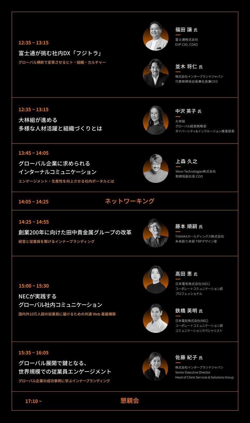 そこで本カンファレンスでは、基調講演に福田 譲氏(富士通株式会社 EVP CIO, CDXO)と並木 将仁 氏(インターブランドジャパン 代表取締役会長兼社長兼CEO)をお招きし、富士通が実践する社内 DX プロジェクトの裏側を紐解き、グローバル規模で一体感を醸成するためのヒントをお伺いします。