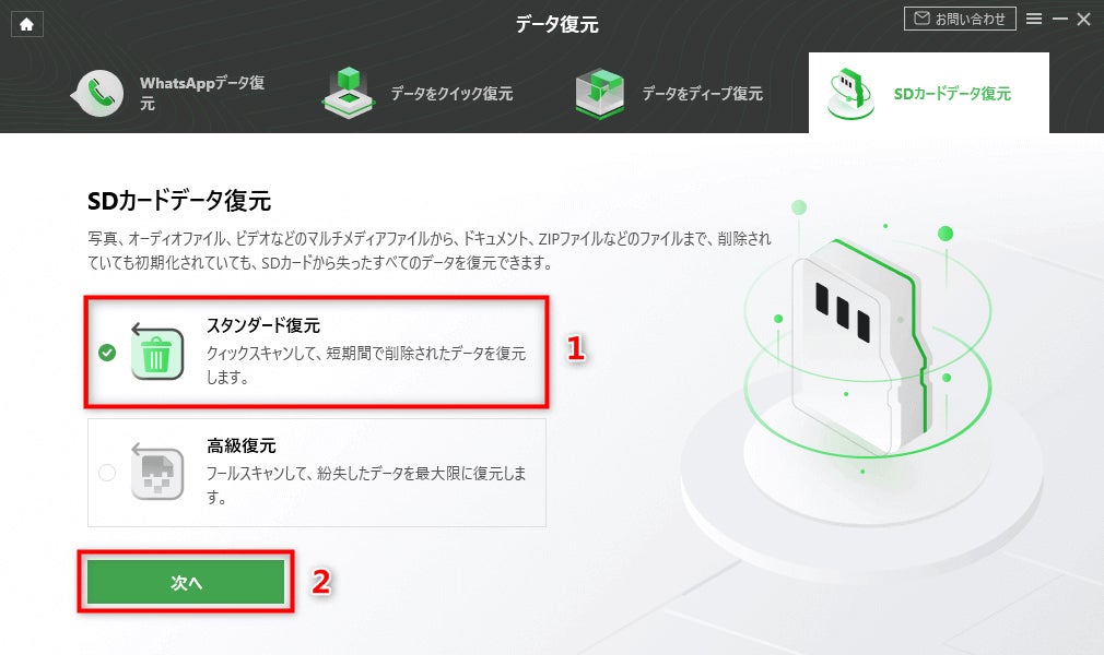 Step4. SDカードを挿します。「次へ」ボタンをクリックして、スキャンを行います。