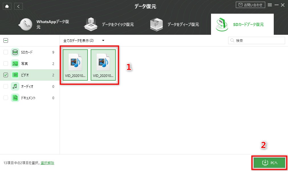 Step5.SDカードから復元可能のファイルが表示されます。復元したいファイルを選択します。