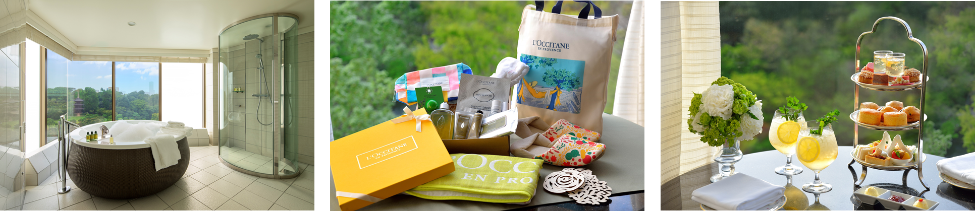 特別仕様のコラボレーションルームとロクシタンの「ヴァーベナ」シリーズが詰まった贅沢なギフトコレクション、ロビーラウンジ「ル・ジャルダン」のアフタヌーンティーを客室にご用意したスペシャルなステイプラン。