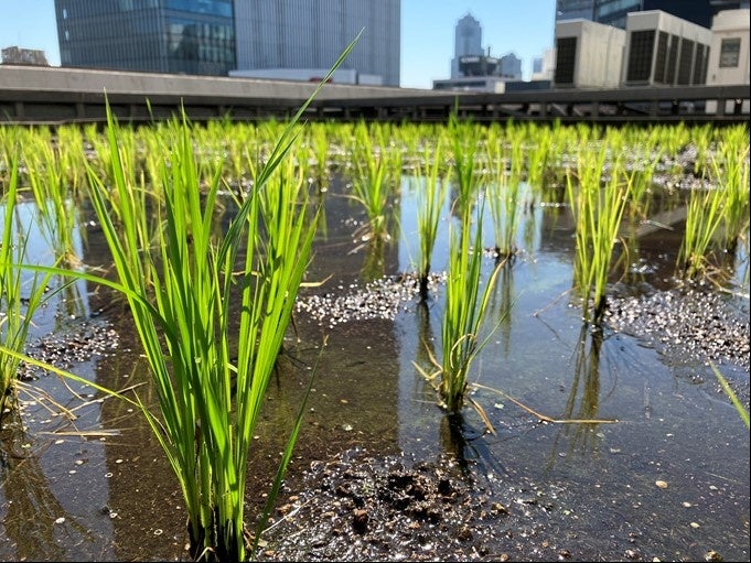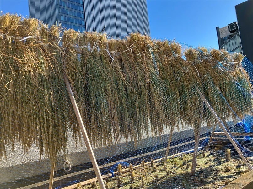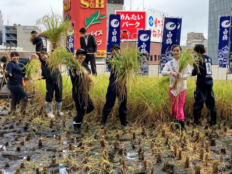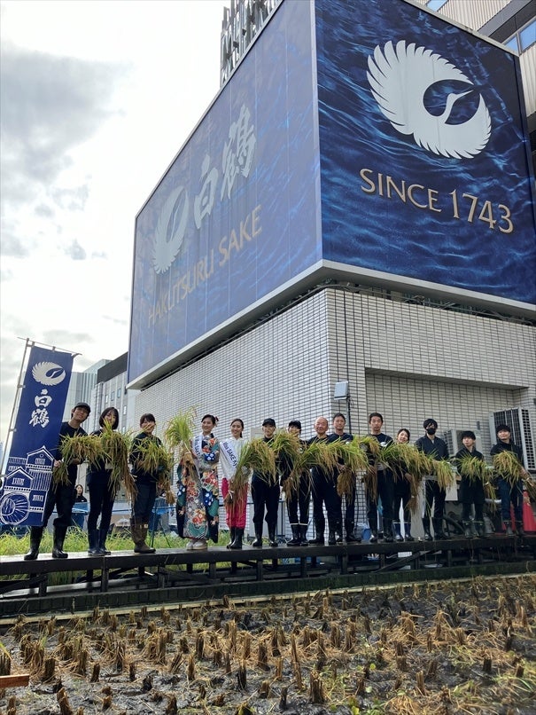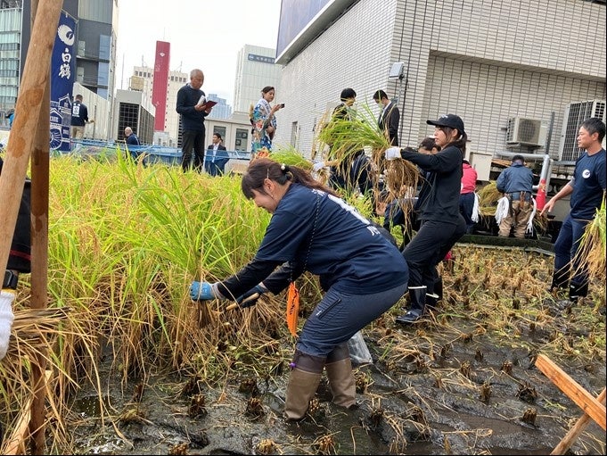 東京・銀座屋上の農園「白鶴銀座天空農園」で自社開発酒米「白鶴錦」の稲刈りが無事終了!