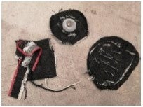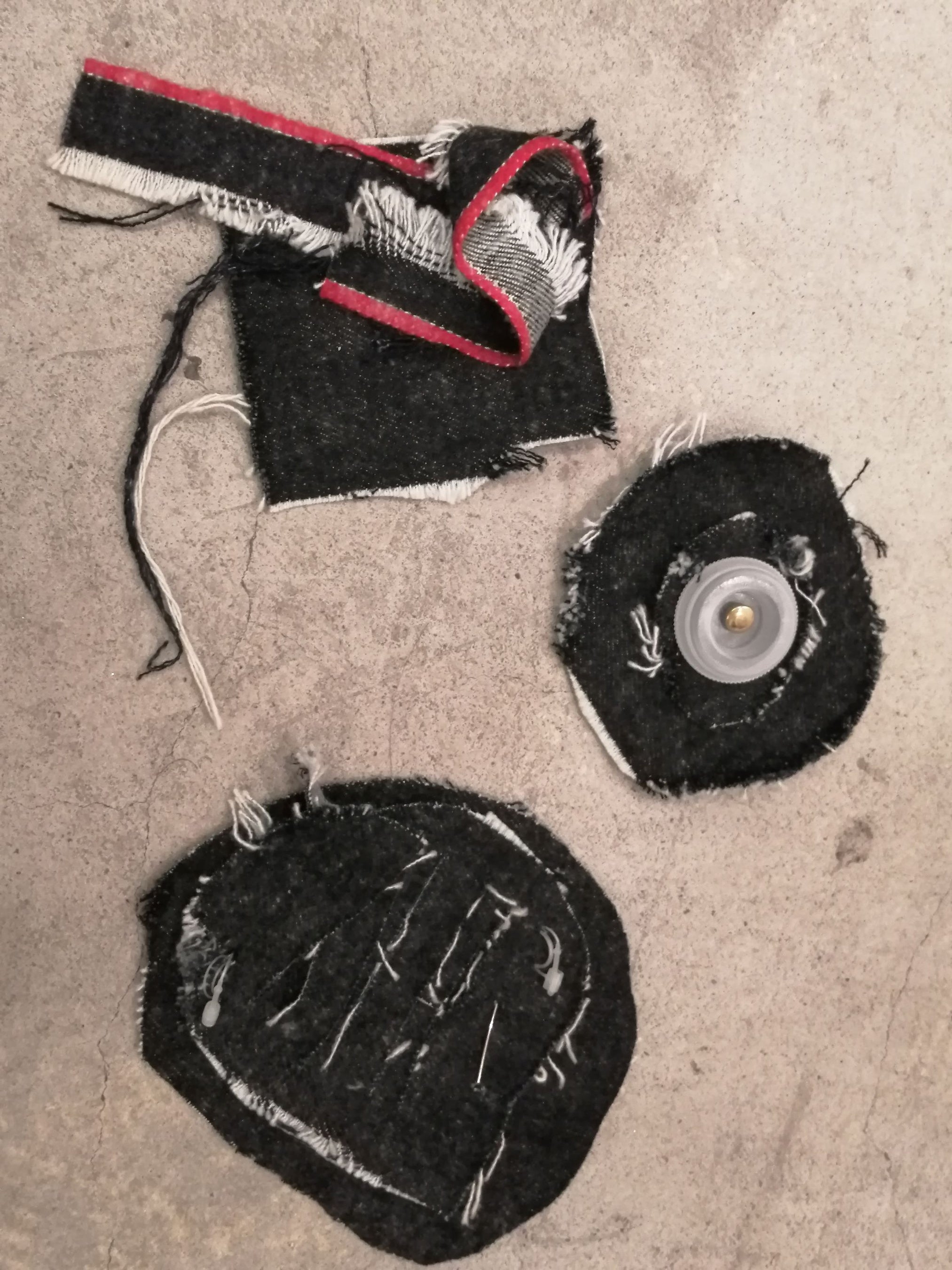 概 要:デニム生地の端材を引っ搔いたり切ったりして、ほつれた糸