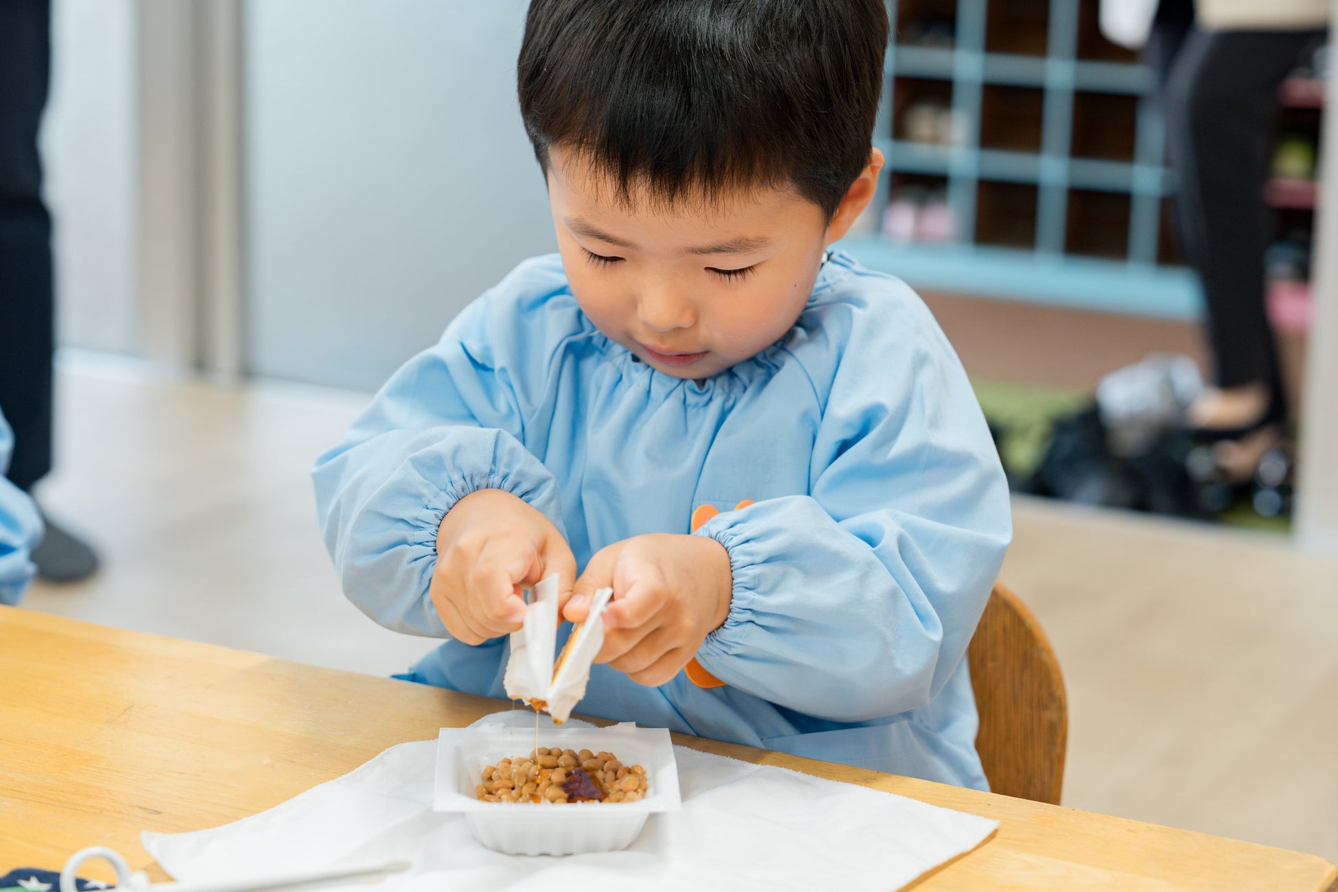 このイベントは、納豆の栄養価の高さと手軽に食べられる点に着目し、3歳児が自分で納豆を準備し、食べる体験を通して「自分でできる楽しさ」を体感することを目的としています。