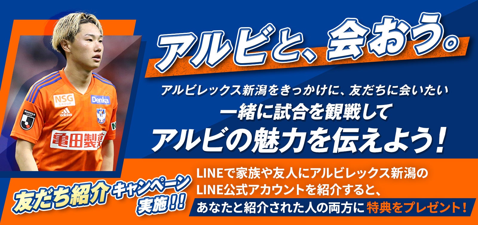 今シーズンも終盤となりますが、新たな仲間を増やす施策として、幅広い世代で利用されるLINE公式アカウントを活用した友だち紹介キャンペーン「アルビと、会おう。」を実施することになりました。