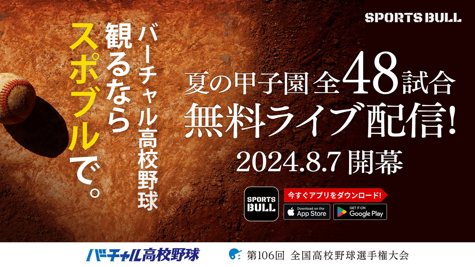 株式会社朝日新聞社(代表取締役社長:角田克)と朝日放送テレビ株式会社(代表取締役社長:今村俊昭)は、KDDI株式会社(代表取締役社長 CEO:髙橋誠)の協力のもと、株式会社運動通信社(代表取締役社長:黒飛功二朗)が運営するスポーツメディア「SPORTS BULL(スポーツブル)」内で展開する「バーチャル高校野球」(https://vk.sportsbull.jp/koshien/)にて、第106回全国高等学校野球選手権大会(主催:朝日新聞社、日本高等学校野球連盟)の全国大会の組み合わせ抽選会と全48試合のライブ配信を実施します。