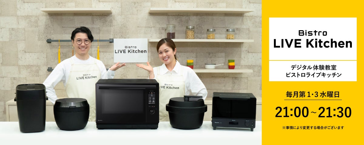 パナソニック株式会社の調理家電『ビストロ』とレシピ動画メディアの『DELISH KITCHEN』がコラボし、『ビストロ』を使ったお料理レシピをオンラインでお届けするデジタル体験教室。『DELISH KITCHEN』のInstagramアカウントから、毎月第1・第3水曜日の21:00~21:30にライブ形式で放送。30分間のライブの中で『ビストロ』各種の実演紹介をしながら主食・主菜・副菜など毎回2〜3品を料理番組形式で紹介します。